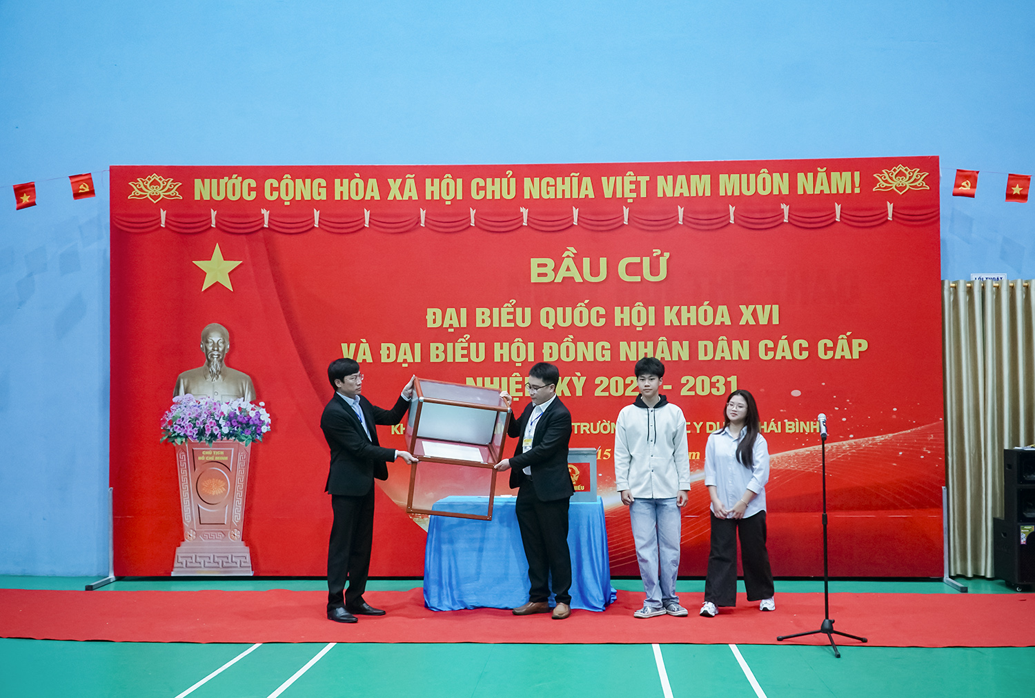 Ngày 15/3/2026, tại điểm bỏ phiếu là Nhà thể chất đa năng, 3.586 cử tri là sinh viên Trường Đại học Y Dược Thái Bình đã tham gia bầu cử đại biểu Quốc hội khóa XVI và đại biểu Hội đồng nhân dân các cấp nhiệm kỳ 2026 - 2031, thực hiện quyền và nghĩa vụ thiêng liêng của mình, góp phần làm nên một kỳ bầu cử dân chủ, trách nhiệm và thành công.