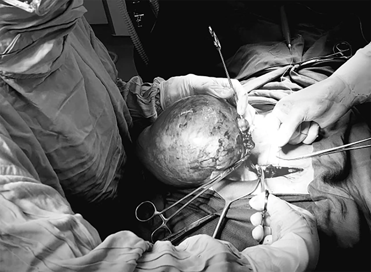 Sau khi hội chẩn các bác sĩ đã chỉ định phẫu thuật cắt bỏ khối u để tránh biến chứng nguy hiểm. Ca phẫu thuật kéo dài hơn 1 giờ đã được thực hiện thành công. Kíp phẫu thuật đã bóc tách hoàn toàn khối u nặng gần 3kg, đồng thời đảm bảo an toàn tuyệt đối cho người bệnh.