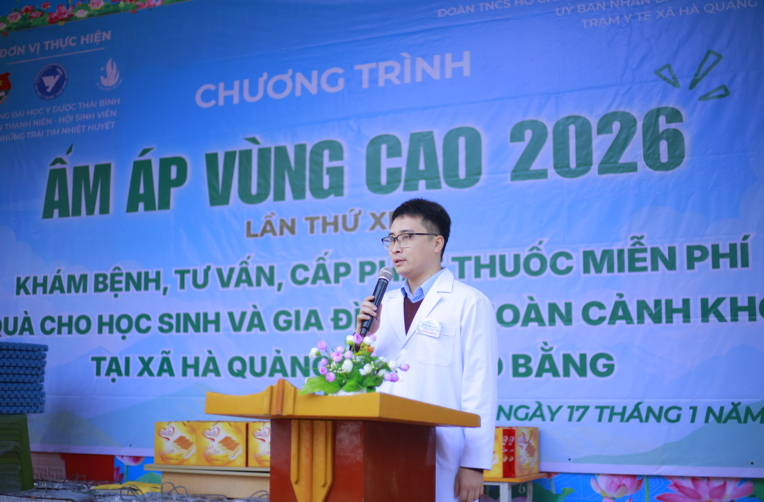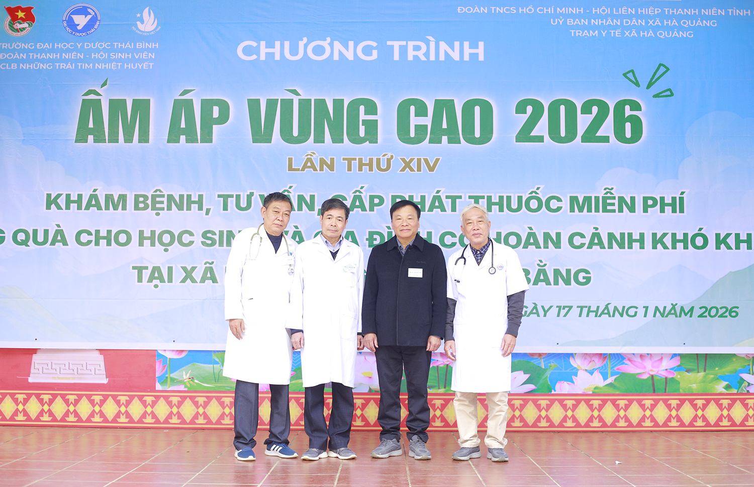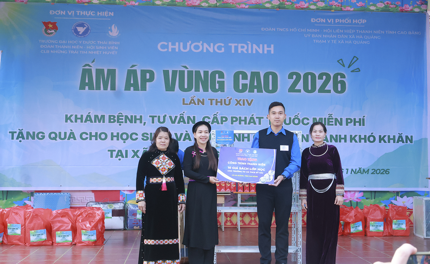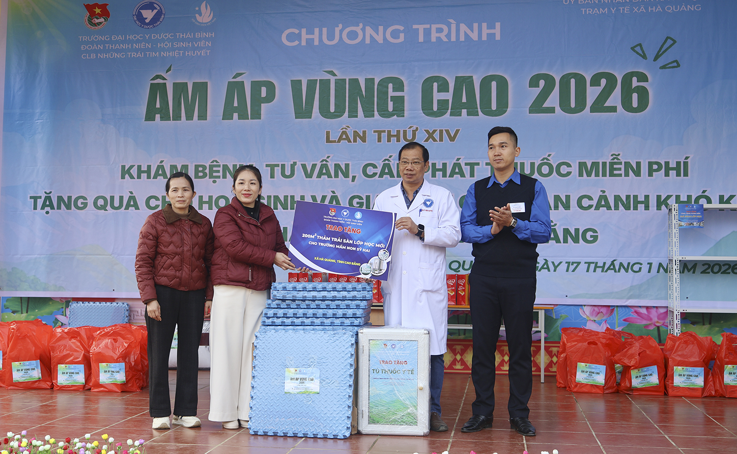Được sự chỉ đạo của Đảng ủy, Ban Giám hiệu, Đoàn thanh niên, Hội sinh viên Trường Đại học Y Dược Thái Bình đã phát động phong trào quyên góp ủng hộ Chương trình “Ấm áp vùng cao” lần thứ XIV năm 2026 tới toàn thể cán bộ viên chức, người lao động và học viên, sinh viên. Từ ngày 16 đến ngày 18 tháng 01 năm 2026, đoàn công tác của thầy và trò Nhà trường đã đến xã Hà Quảng, tỉnh Cao Bằng.