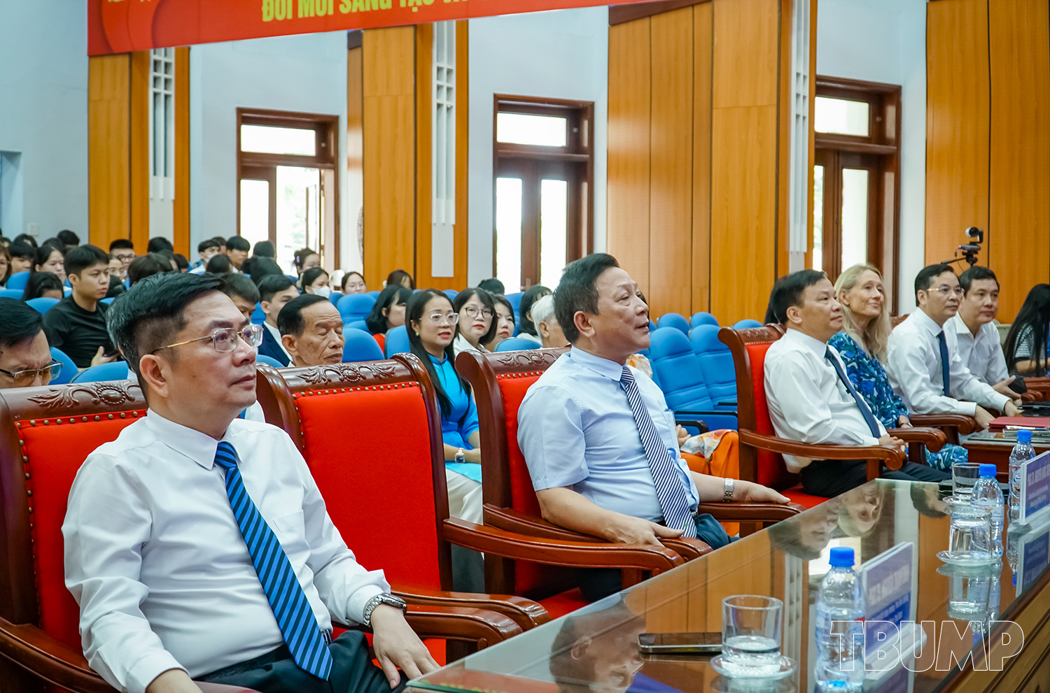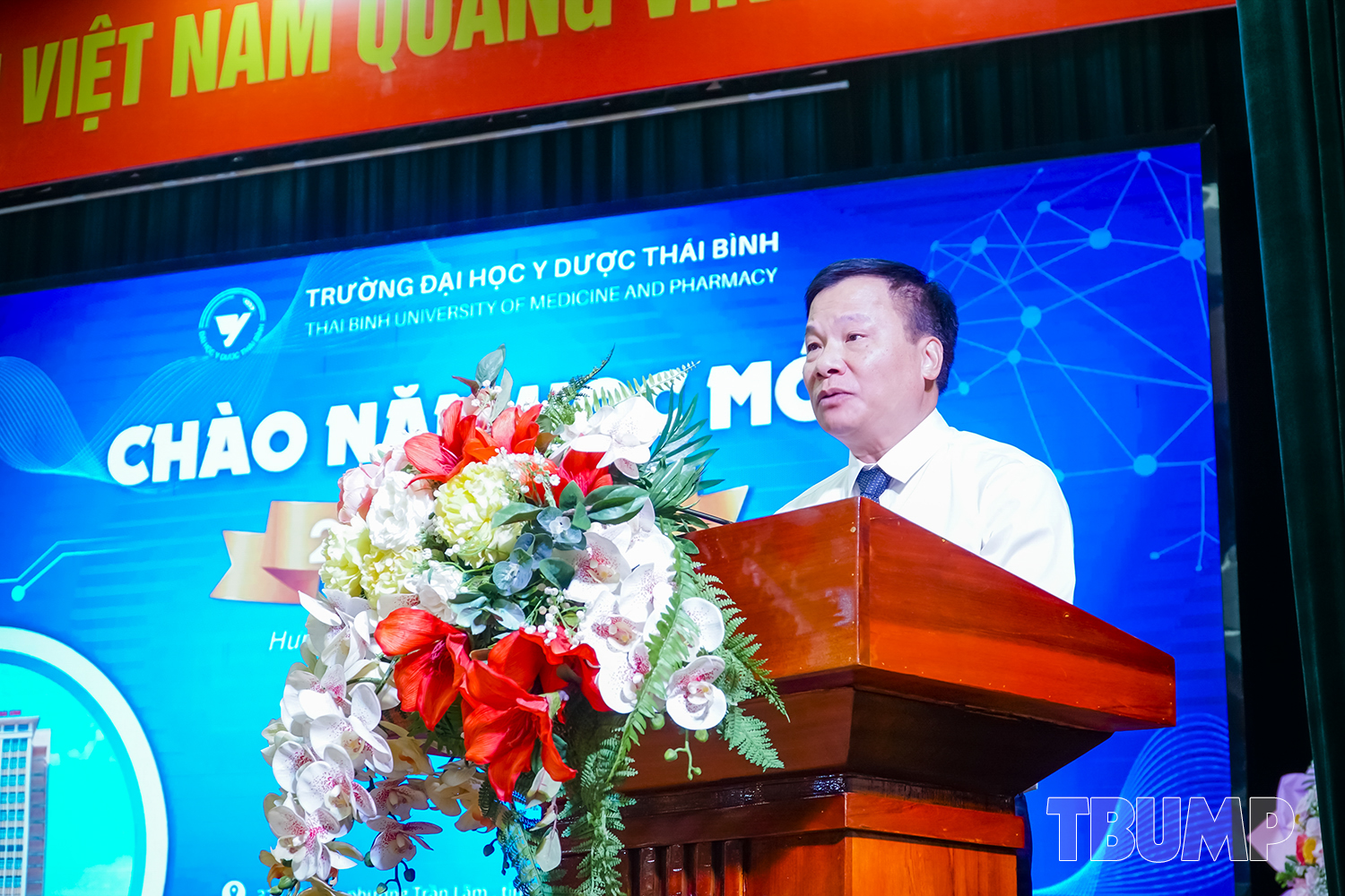Phát biểu tại chương trình, Thầy PGS, Hiệu trưởng Nhà trường đã gửi lời cảm ơn sâu sắc đến các cấp lãnh đạo đã luôn quan tâm, chỉ đạo và tạo điều kiện thuận lợi để Nhà trường hoàn thành xuất sắc các nhiệm vụ. Cảm ơn các thầy cô giáo, giảng viên, nhân viên, người học của Nhà trường đã nỗ lực, vượt qua mọi khó khăn, góp phần xây dựng và phát triển Nhà trường. Đặc biệt, thầy Hiệu trưởng gửi lời chúc mừng tới các tân sinh viên, những gương mặt ưu tú đã xuất sắc vượt qua kỳ tuyển sinh và chính thức trở thành một phần của Trường Đại học Y Dược Thái Bình. Thầy tin tưởng rằng, với nhiệt huyết tuổi trẻ và tinh thần học tập nghiêm túc, các em sinh viên sẽ không ngừng nỗ lực rèn luyện, trưởng thành và vững bước trên con đường học tập, nghiên cứu và phục vụ cộng đồng.