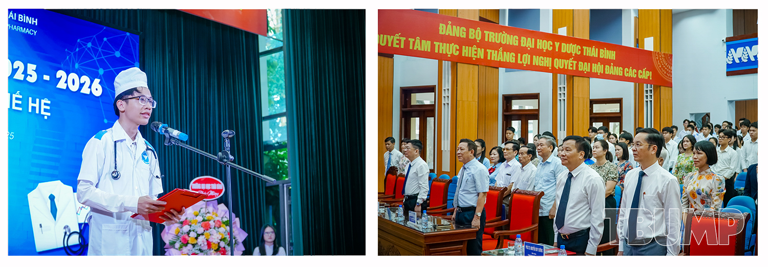 Tân sinh viên Trường Đại học Y Dược Thái Bình đọc lời tuyên thệ