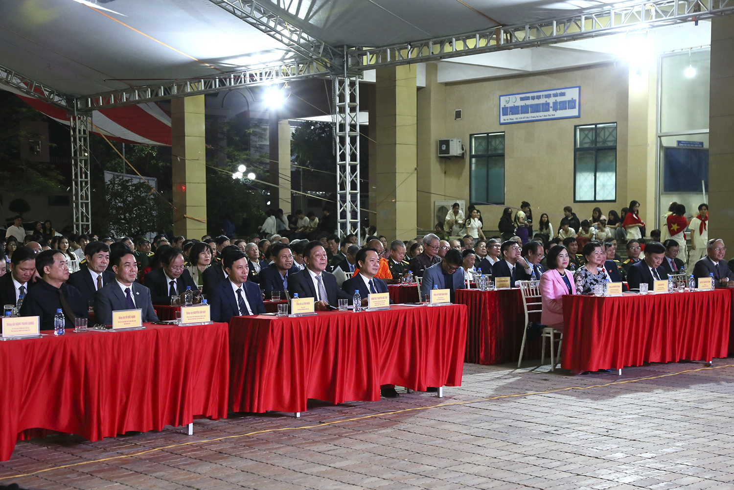 Các đồng chí lãnh đạo Đảng, Nhà nước, lãnh đạo tỉnh Hưng Yên và sinh viên Việt Nam, sinh viên quốc tế giao lưu văn nghệ.