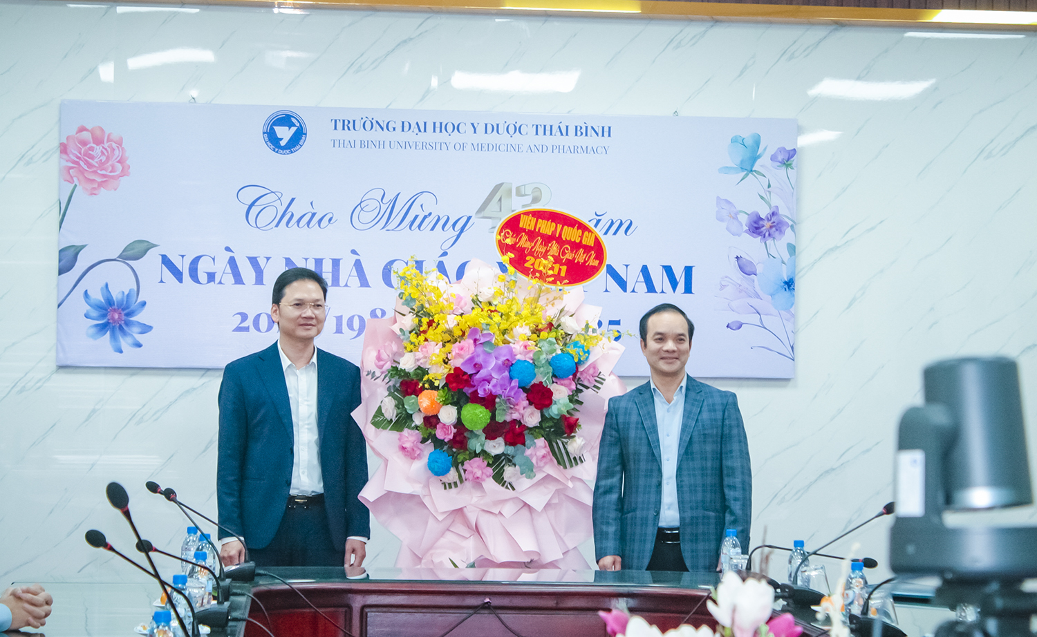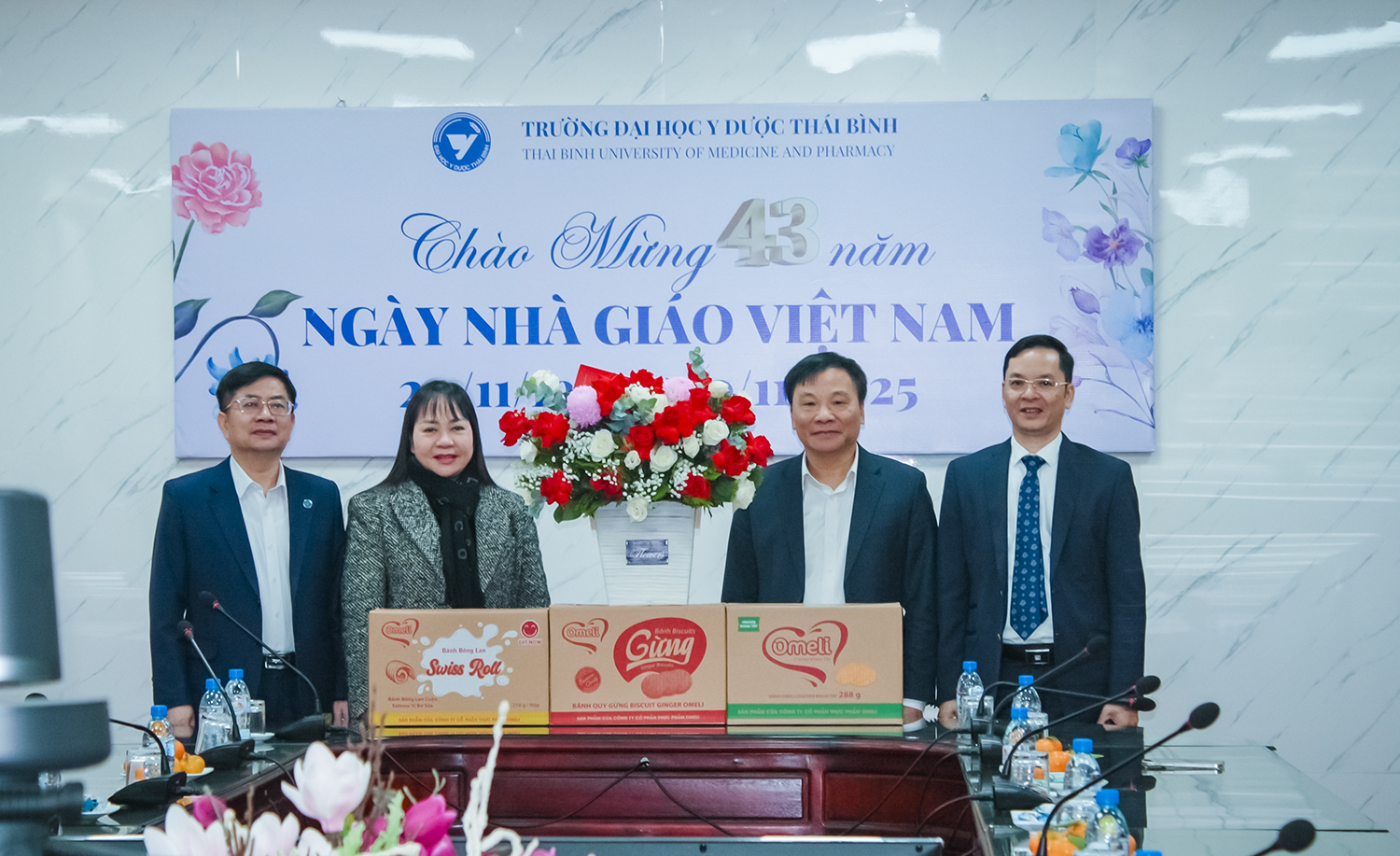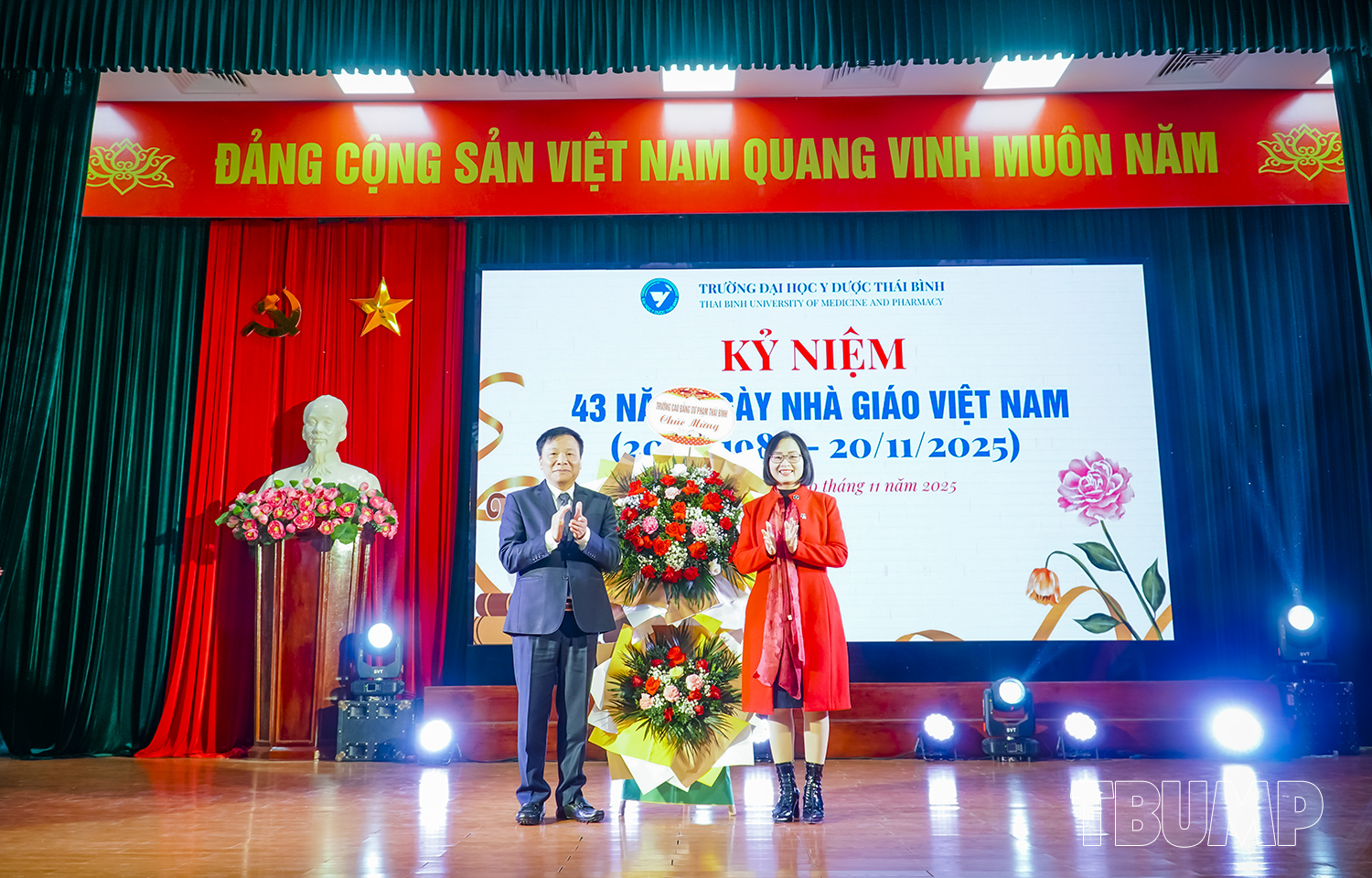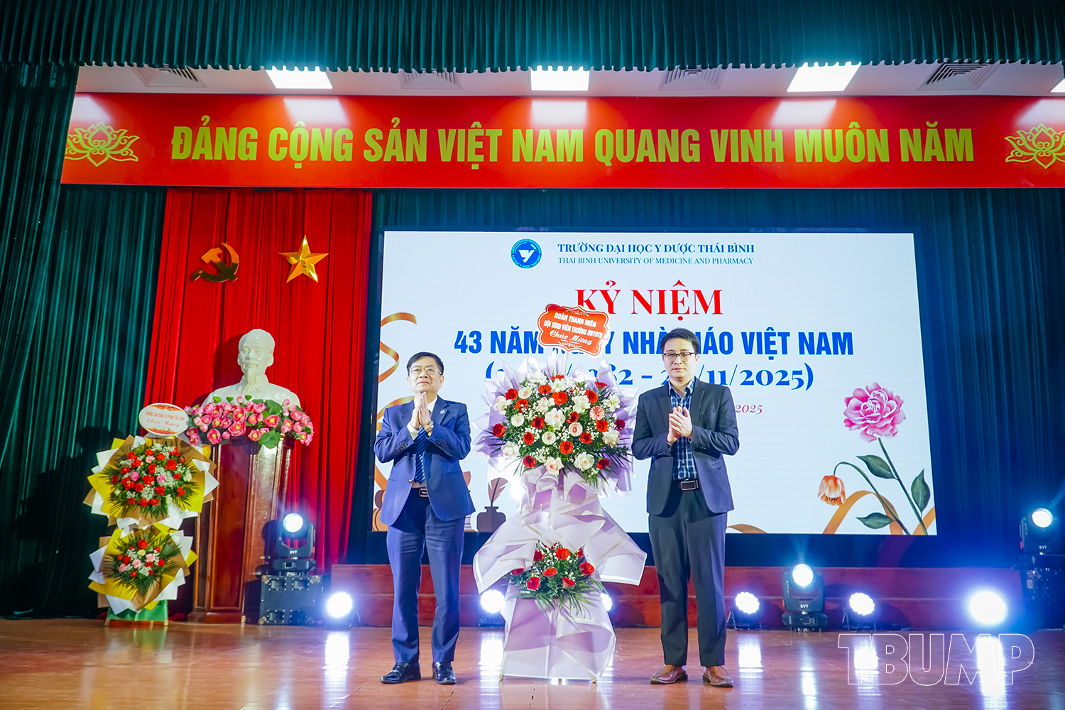 Trong không khí vui tươi, phấn khởi của toàn ngành giáo dục chào mừng ngày Hiến chương các nhà giáo, chiều ngày 19/11/2025, Trường Đại học Y Dược Thái Bình long trọng tổ chức chương trình kỷ niệm 43 năm ngày Nhà giáo Việt Nam nhằm tôn vinh các thế hệ thầy cô giáo, các cán bộ Nhà trường đã và đang cống hiến cho sự nghiệp đào tạo cũng như sự phát triển của Nhà trường.