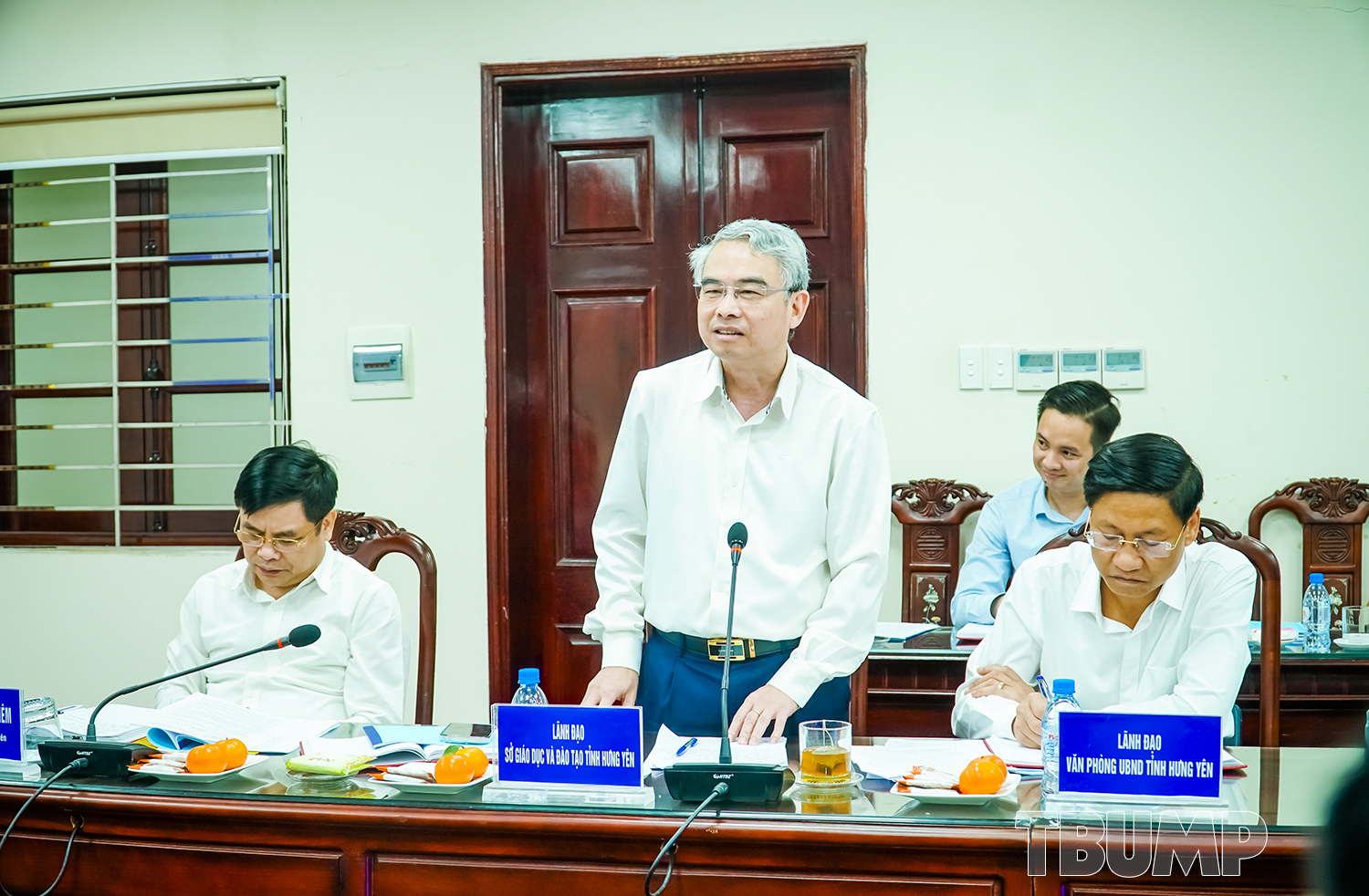 Đồng chí Phạm Đồng Thụy - Ủy viên Ban Thường vụ Tỉnh ủy, Giám đốc Sở Giáo dục và Đào tạo phát biểu tại buổi làm việc