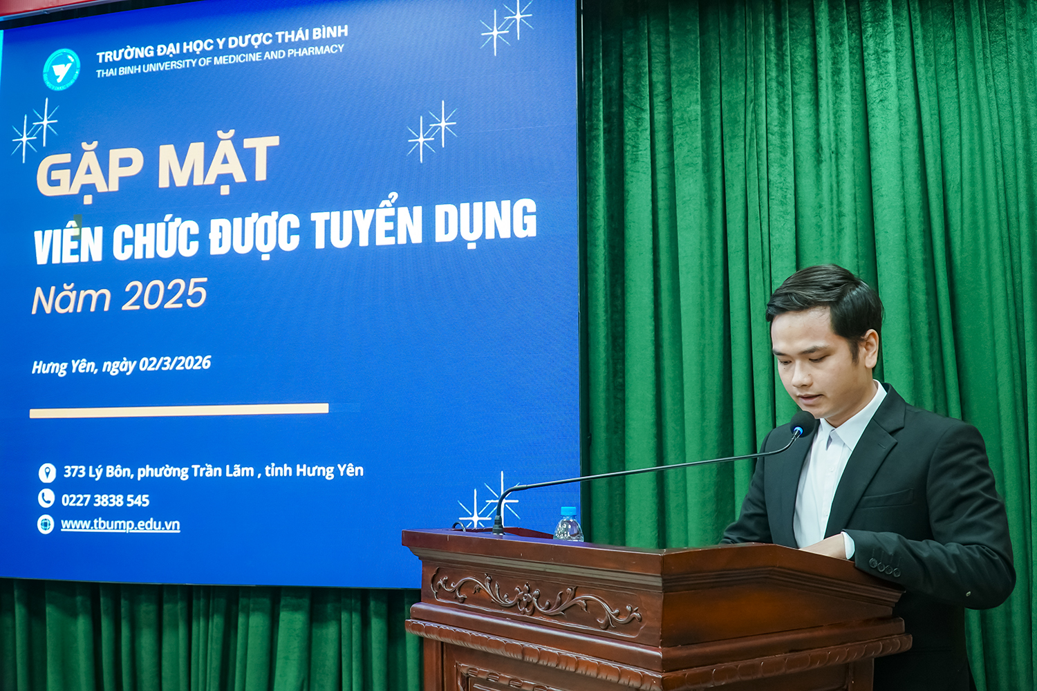 Buổi gặp mặt các viên chức mới được tiếp nhận và xét tuyển năm 2025 diễn ra trong không khí vui vẻ, ấm áp, thể hiện sự quan tâm của Tập thể lãnh đạo Nhà trường trong công tác phát triển, bồi dưỡng đội ngũ cán bộ trẻ có hoài bão, khát khao cống hiến. Mang theo niềm vinh dự và tự hào, nhiệt huyết của tuổi trẻ khi trở thành viên chức của Trường Đại học Y Dược Thái Bình, các viên chức đều mong muốn được tiếp tục làm việc, được cống hiến, đóng góp công sức, trí tuệ cho sự phát triển của các đơn vị và Nhà trường.