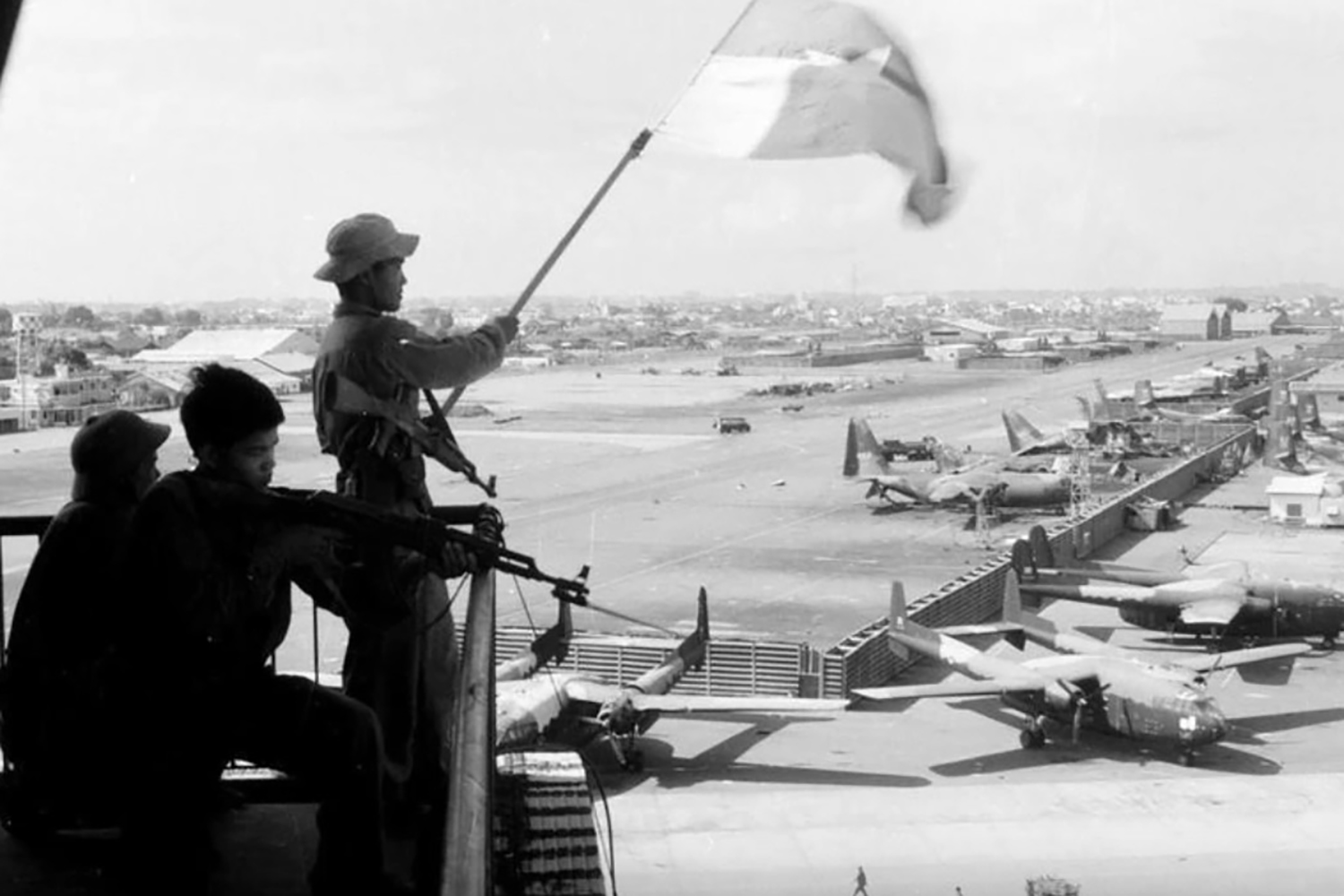 Cờ giải phóng tung bay trên sân bay Tân Sơn Nhất, ngày 30/4/1975.