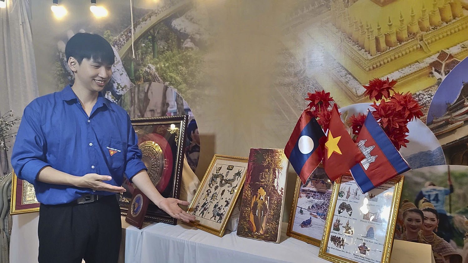 Sinh viên Việt Nam chuẩn bị gian hàng đa sắc, giới thiệu ẩm thực ba miền Bắc - Trung - Nam cùng bộ quà tặng tự làm từ đề tài nghiên cứu khoa học, gồm trà thảo mộc, túi thơm và nến. Đinh Thị Quỳnh Anh (năm 2 Điều dưỡng) cho biết nhóm mất một tuần để hoàn thiện, mỗi set giá 150.000 đồng. Gian hàng còn trưng bày hình ảnh văn hóa, lễ hội và biểu trưng của ba nước.
