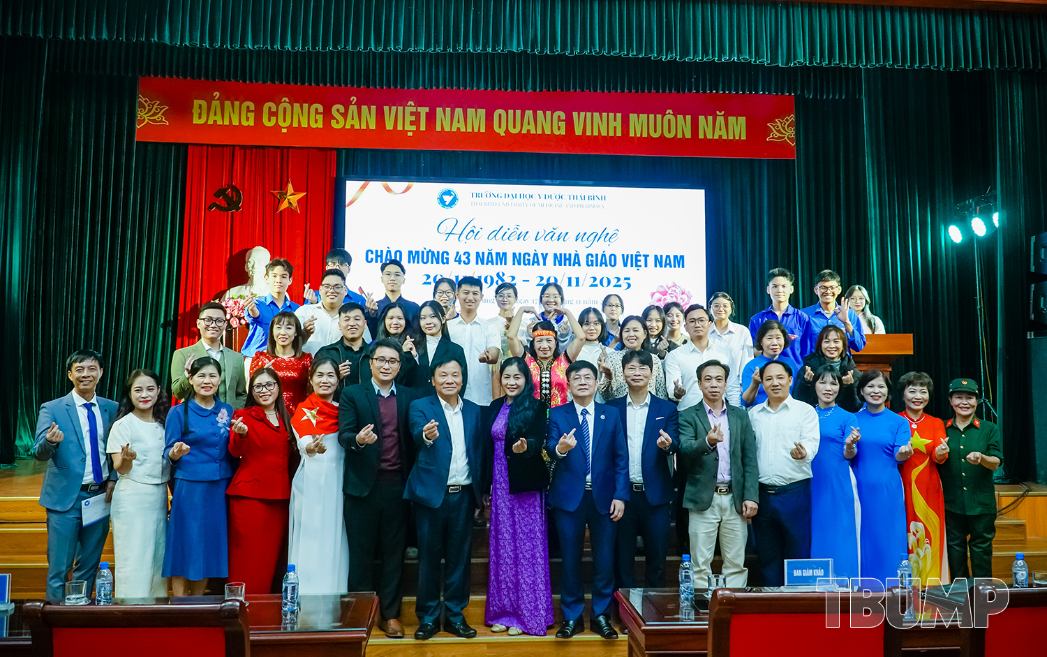 Trong không khí hân hoan của viên chức, người lao động và học viên, sinh viên Trường Đại học Y Dược Thái Bình thi đua lập thành tích chào mừng ngày Nhà giáo Việt Nam 20/11; Công đoàn Trường phối hợp cùng Ban Chấp hành Đoàn thanh niên, phòng Hành chính & Công tác chính trị tổ chức chương trình Hội diễn văn nghệ với các tiết mục tham gia của thầy và trò Nhà trường.