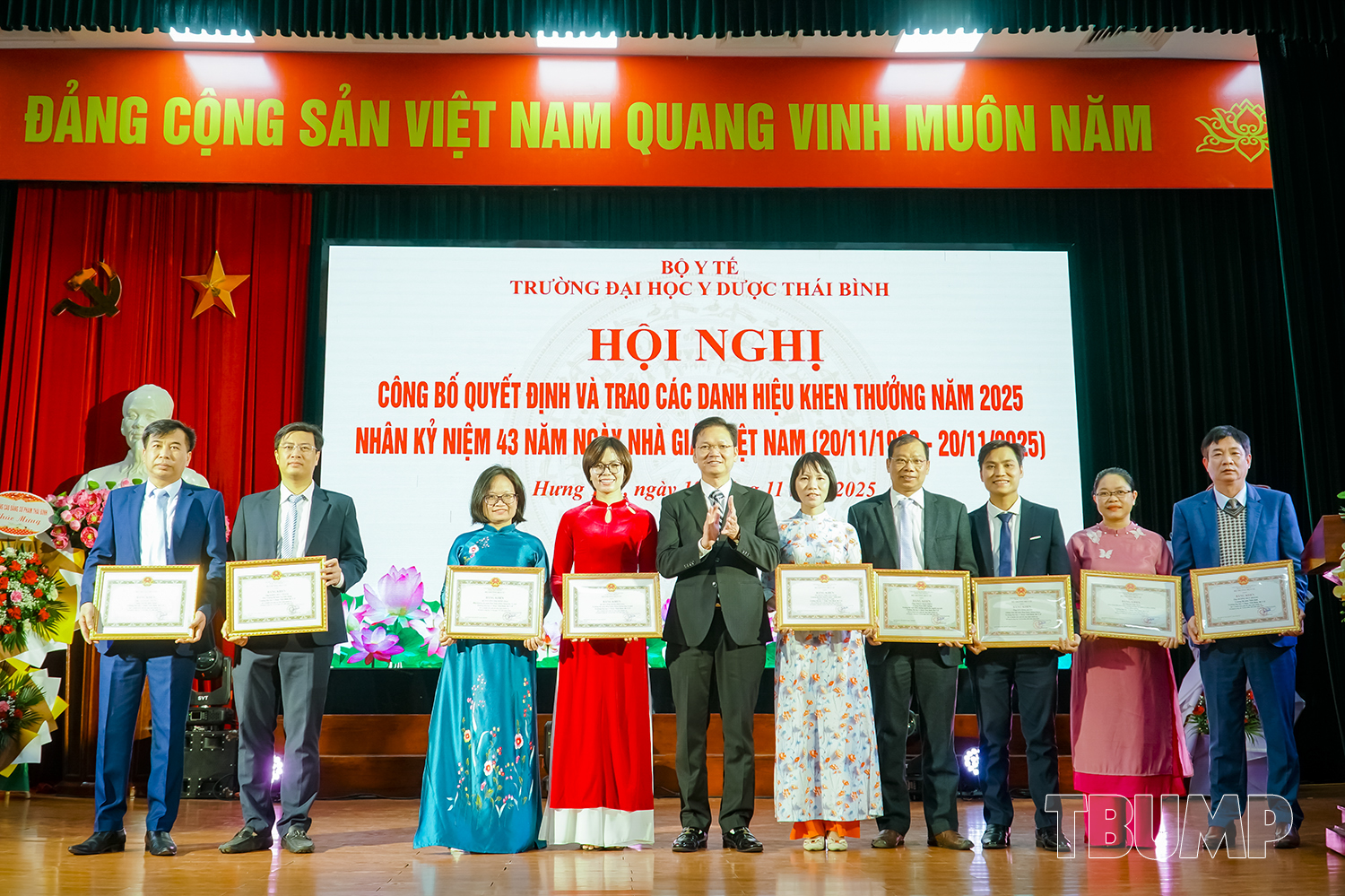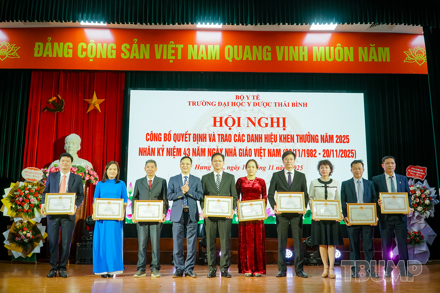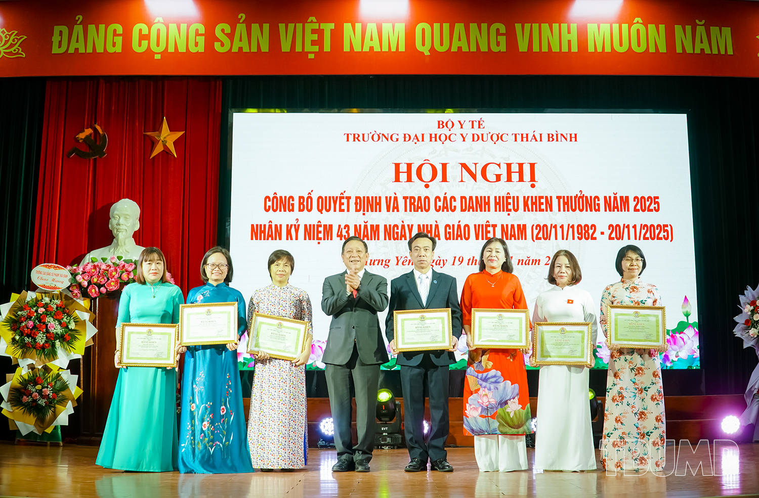 Nhân dịp kỷ niệm ngày Nhà giáo Việt Nam 20/11, chiều ngày 19/11/2025, Trường Đại học Y Dược Thái Bình đã tổ chức Hội nghị công bố Quyết định và trao các danh hiệu hiệu khen thưởng năm 2025.