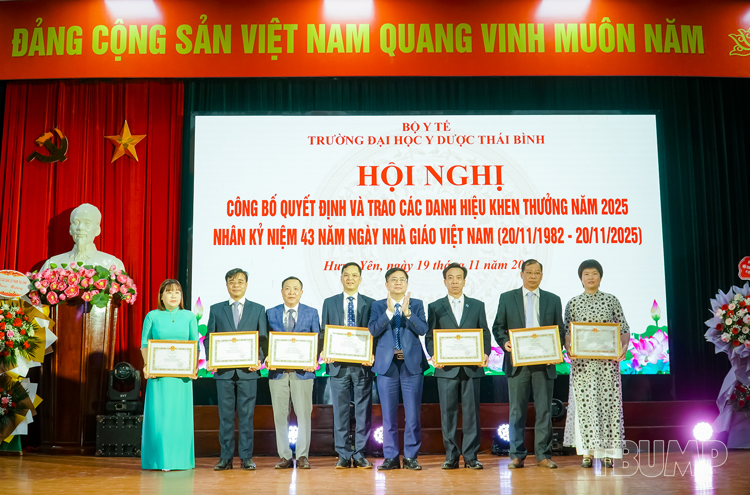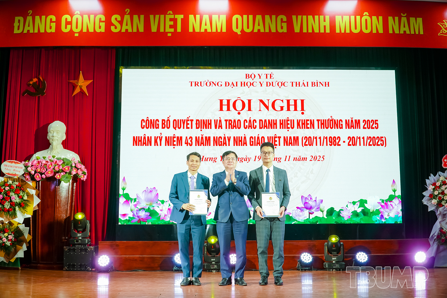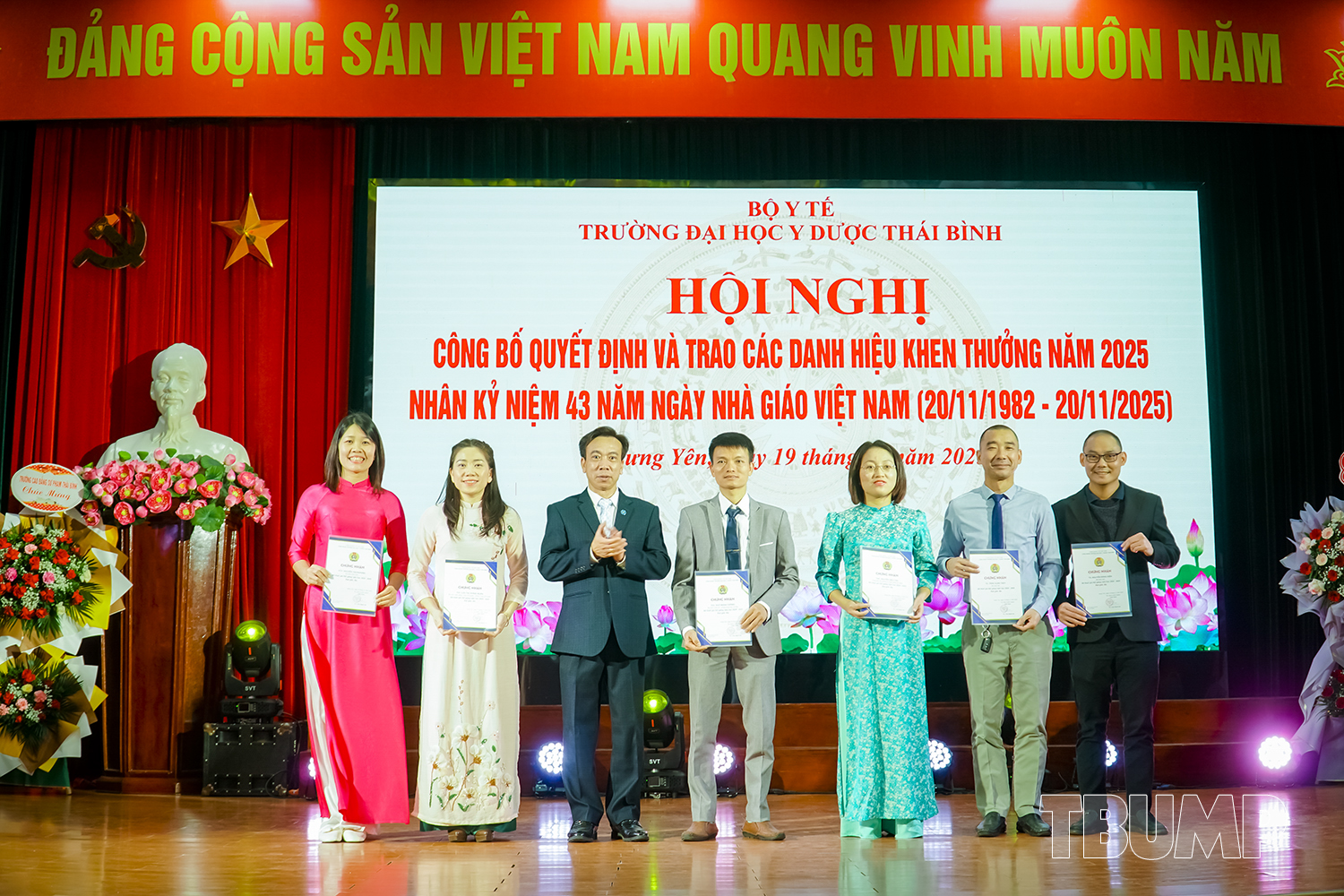 Nhân dịp kỷ niệm ngày Nhà giáo Việt Nam 20/11, chiều ngày 19/11/2025, Trường Đại học Y Dược Thái Bình đã tổ chức Hội nghị công bố Quyết định và trao các danh hiệu hiệu khen thưởng năm 2025.