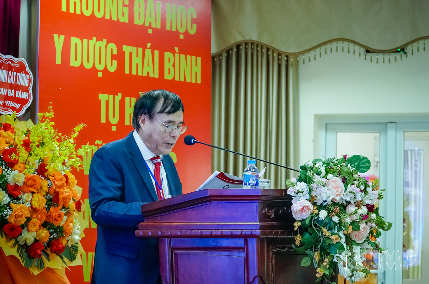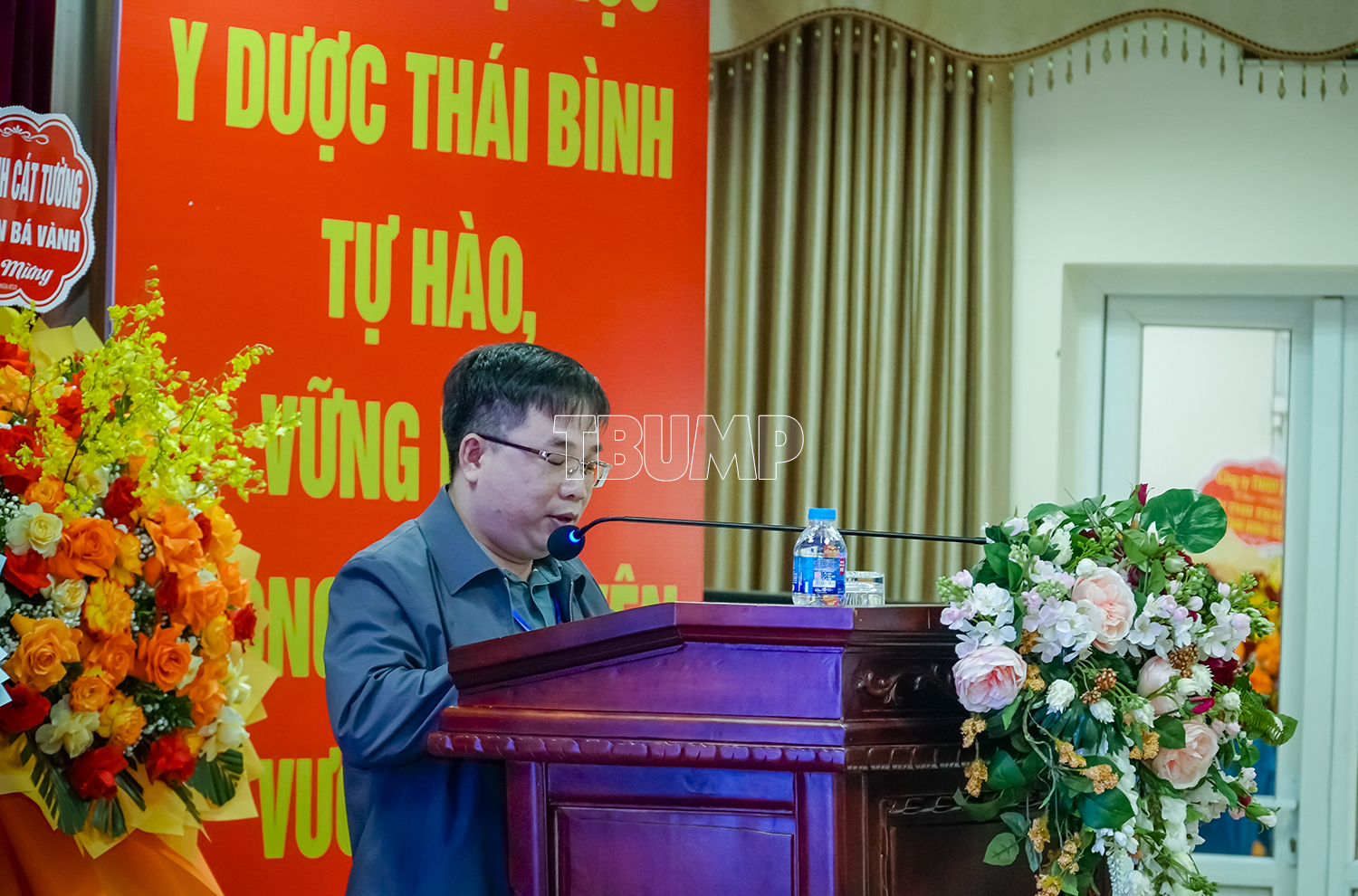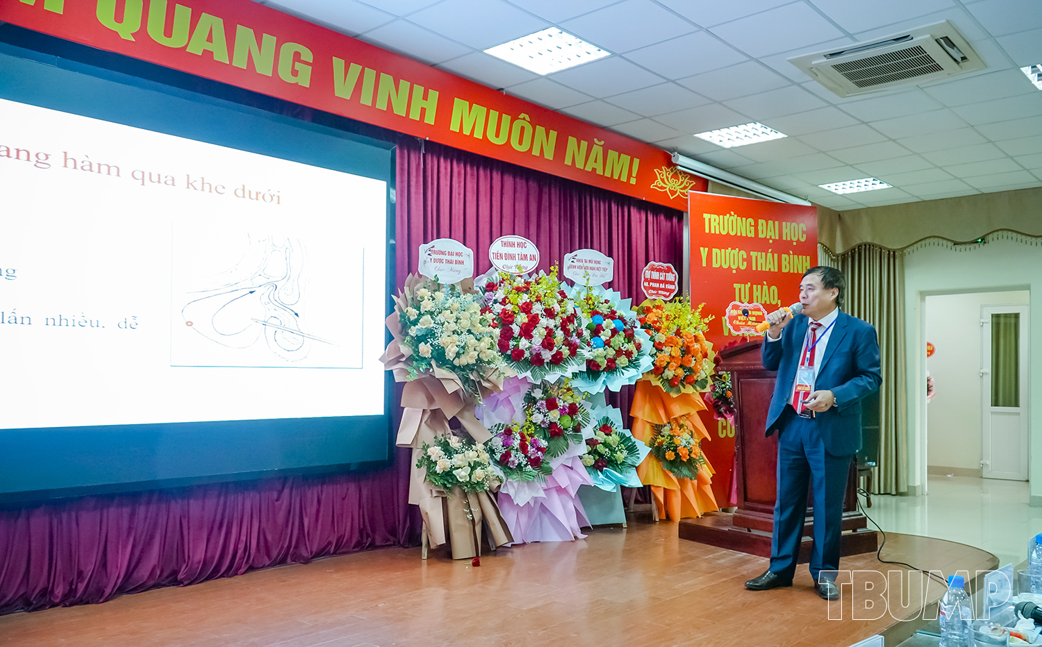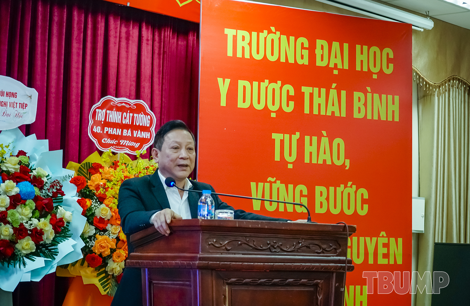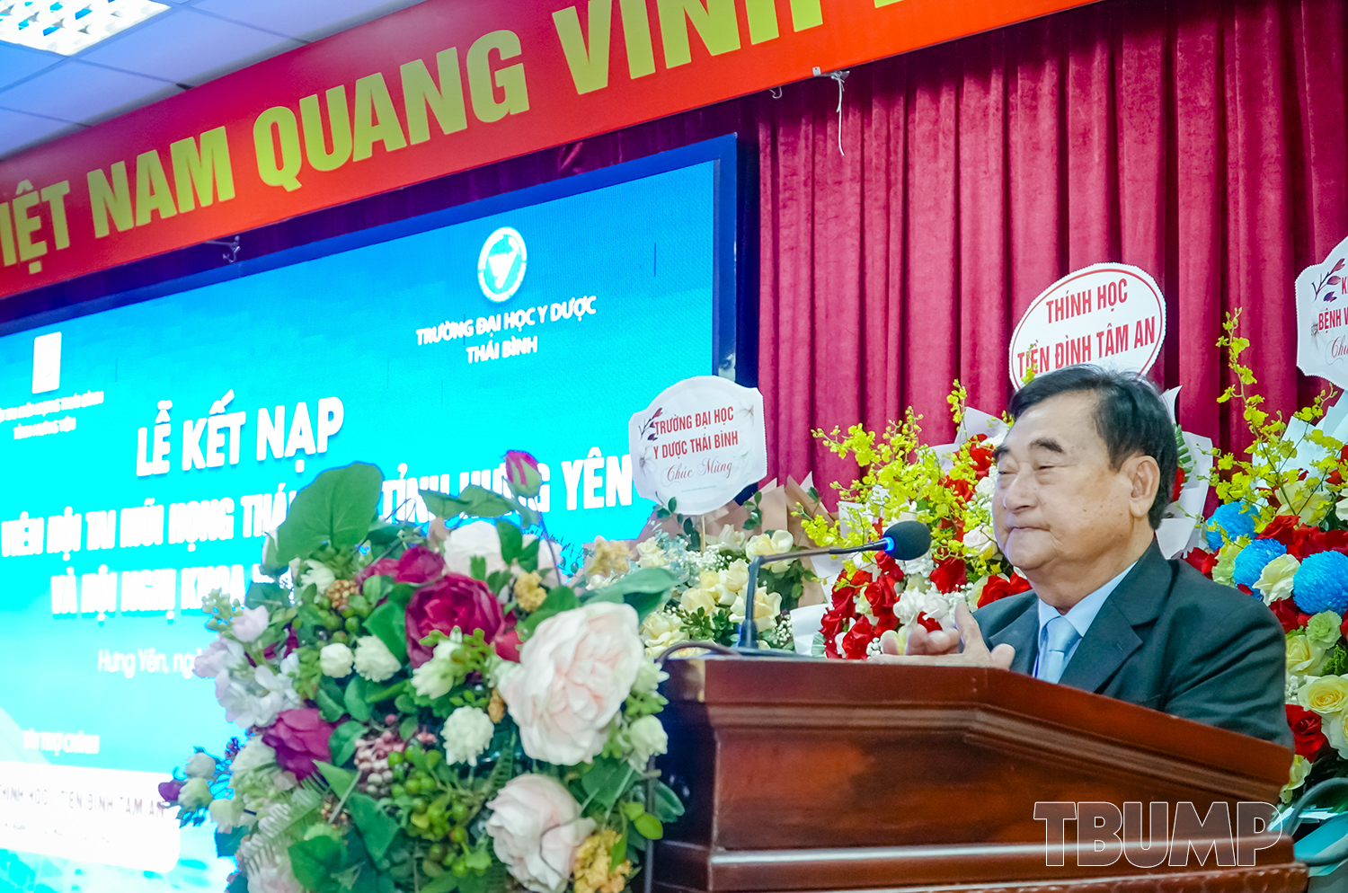 PGS.TS Nguyễn Quốc Tiến - Bí thư Đảng ủy, Chủ tịch Hội đồng trường phát biểu chúc mừng thành công của hội nghị, đồng thời khẳng định sự đồng hành, gắn bó và hỗ trợ của Nhà trường cùng Hội Tai Mũi Họng trong suốt thời gian qua và trong chặng đường sắp tới. Trường Đại học Y Dược Thái Bình và Hội Tai Mũi Họng Thái Bình tỉnh Hưng Yên sẽ tiếp tục phát huy truyền thống hợp tác, cùng nhau phát triển bền vững, góp phần nâng cao chất lượng đào tạo, nghiên cứu khoa học và chăm sóc sức khỏe nhân dân.