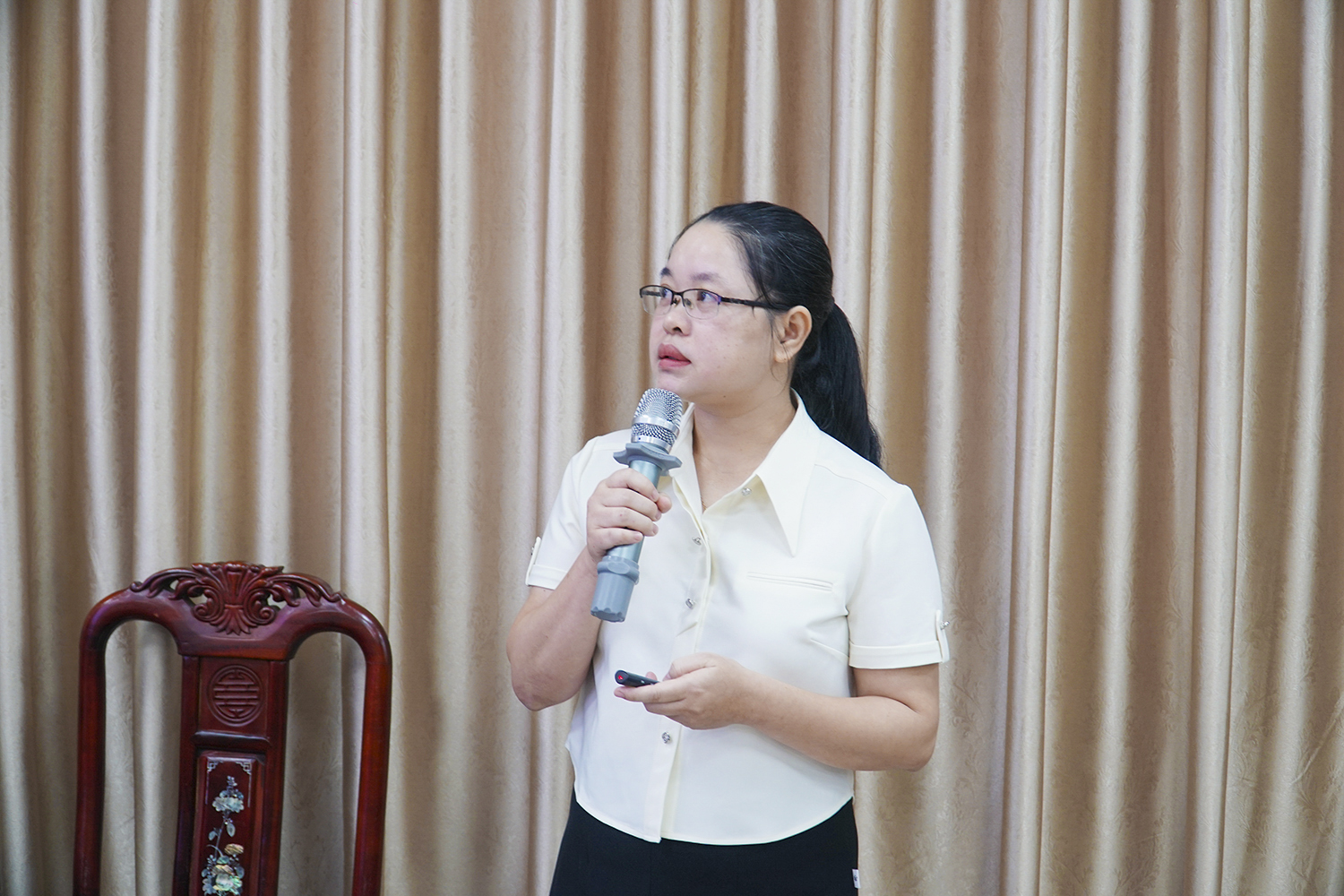 Cán bộ Nhà trường báo cáo tại Hội thảo