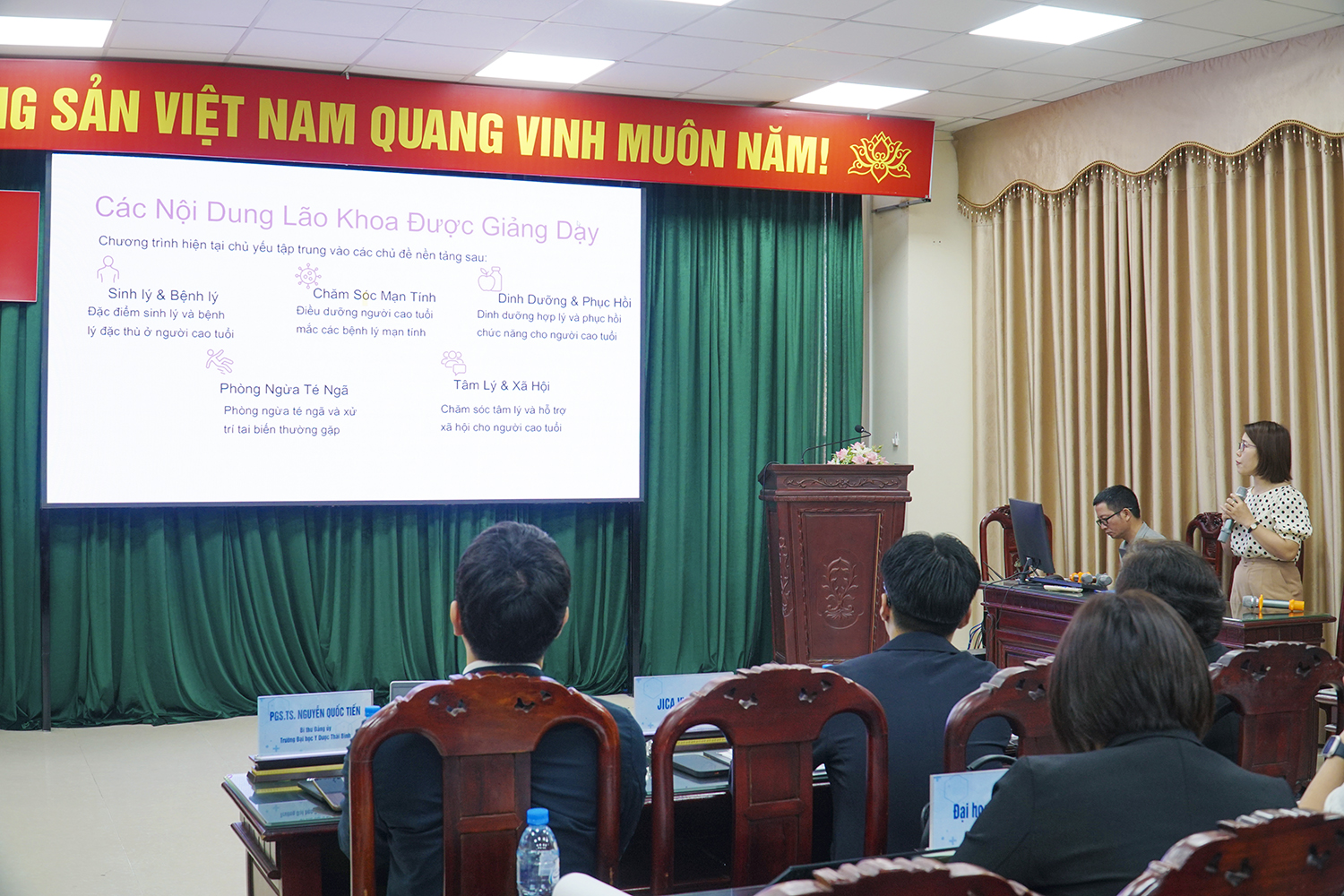- “Báo cáo chương trình Điều dưỡng lão khoa tại Trường Đại học Y Dược Thái Bình” của PGS.TS Trần Thái Phúc - Trưởng Khoa Điều dưỡng.