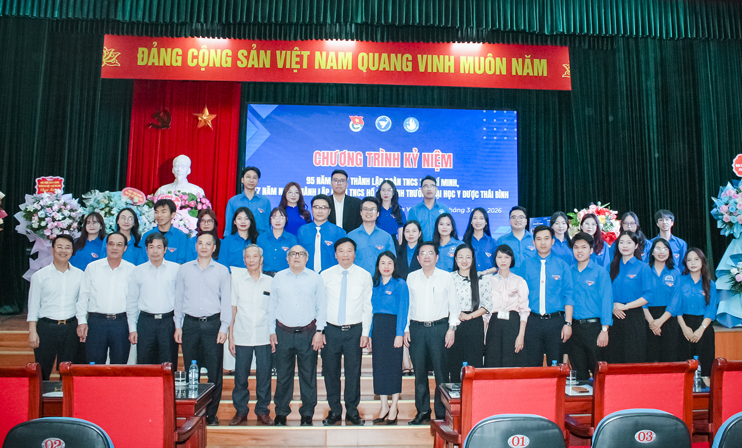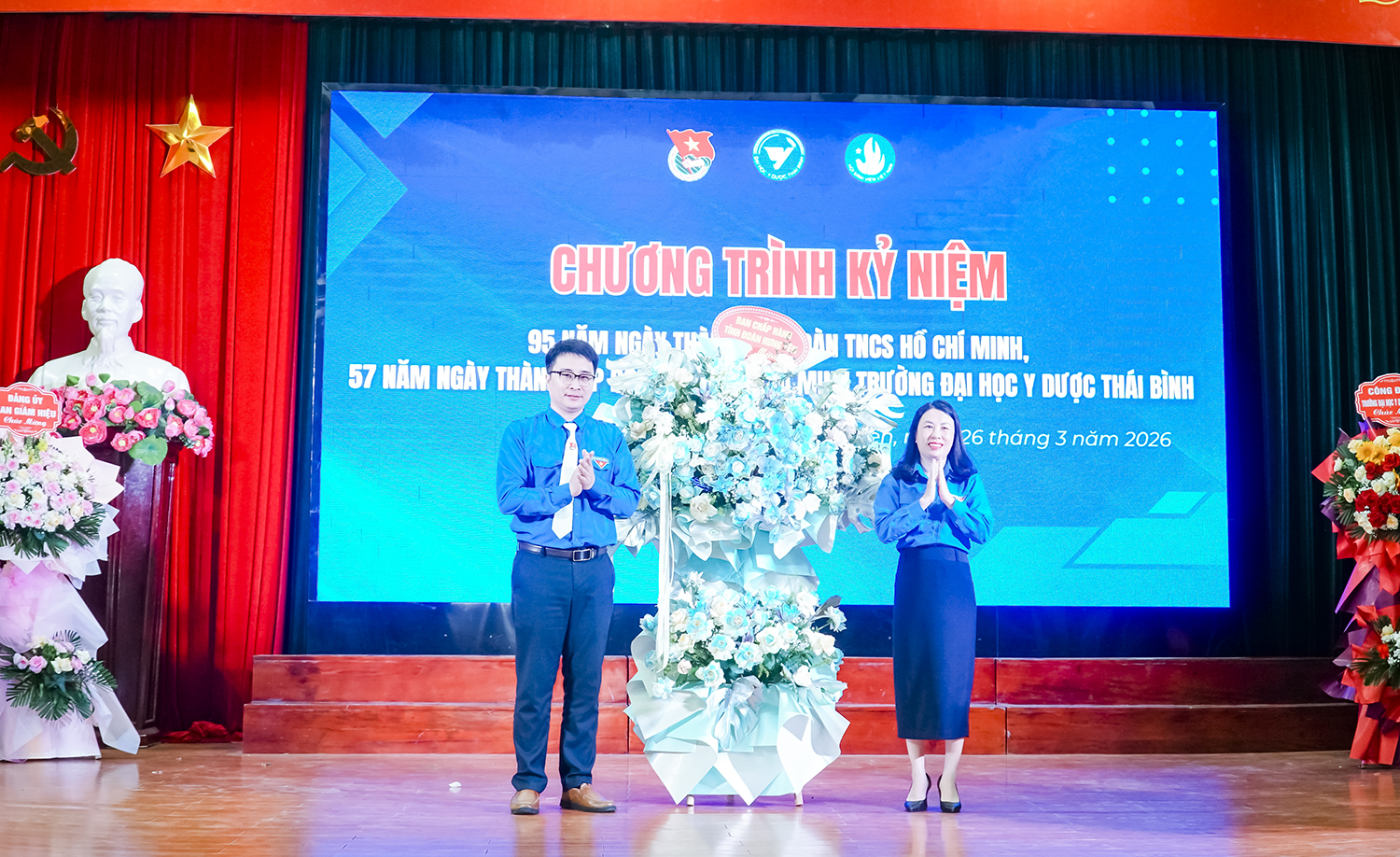 Chiều ngày 26/3/2026, Đoàn TNCS Hồ Chí Minh Trường Đại học Y Dược Thái Bình tổ chức chương trình kỷ niệm 95 năm ngày thành lập Đoàn TNCS Hồ Chí Minh (26/3/1931 - 26/3/2026) và 57 năm ngày thành lập Đoàn TNCS Hồ Chí Minh Trường (26/3/1969 - 26/3/2026).