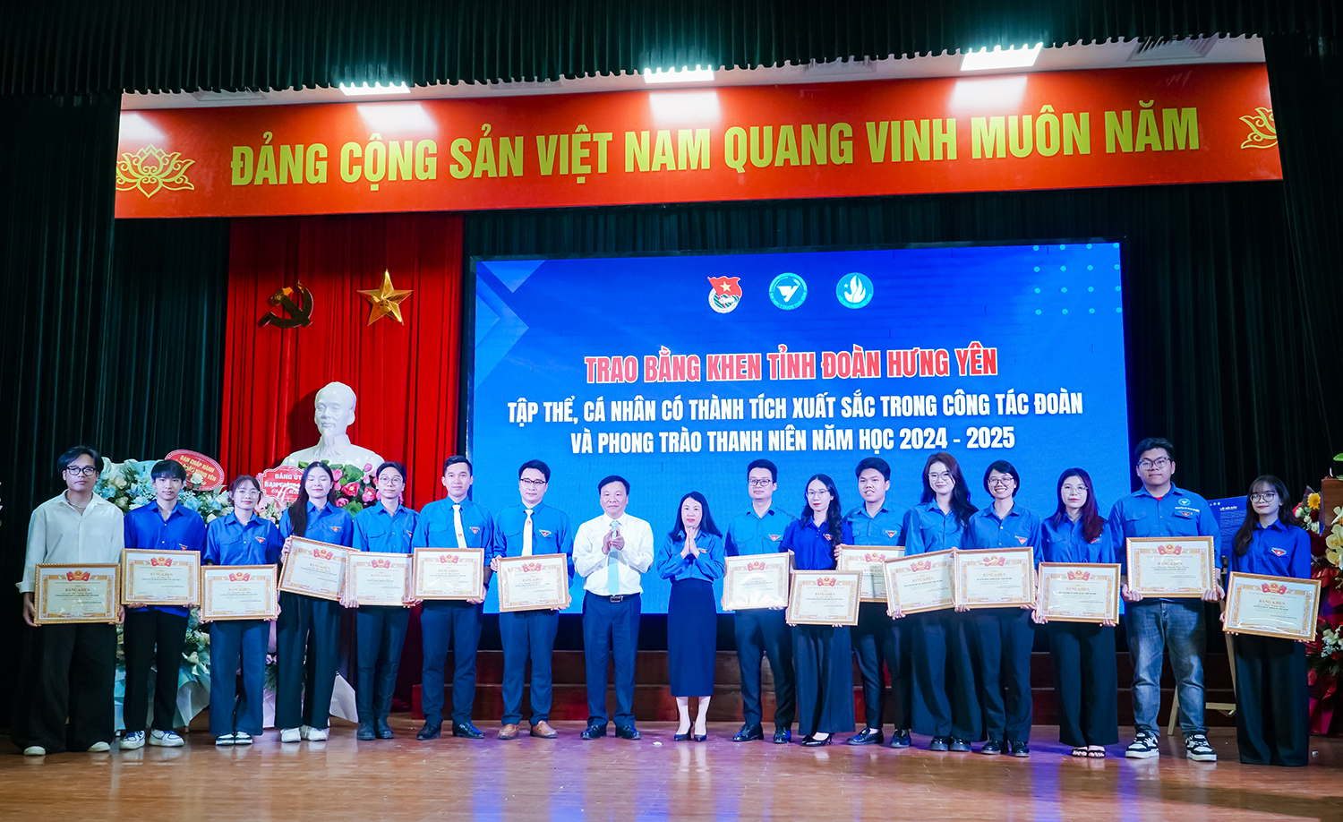 Các tập thể, cá nhân có thành tích xuất sắc trong công tác đoàn được nhận bằng khen của Trung ương Đoàn TNCS HCM; Trung ương Hội Sinh viên Việt Nam; Đoàn TNCS Hồ Chí Minh tỉnh Hưng Yên; giấy khen của Hiệu trưởng Nhà trường; và danh hiệu Thanh niên tiên tiến làm theo lời Bác cấp Trường năm 2025.