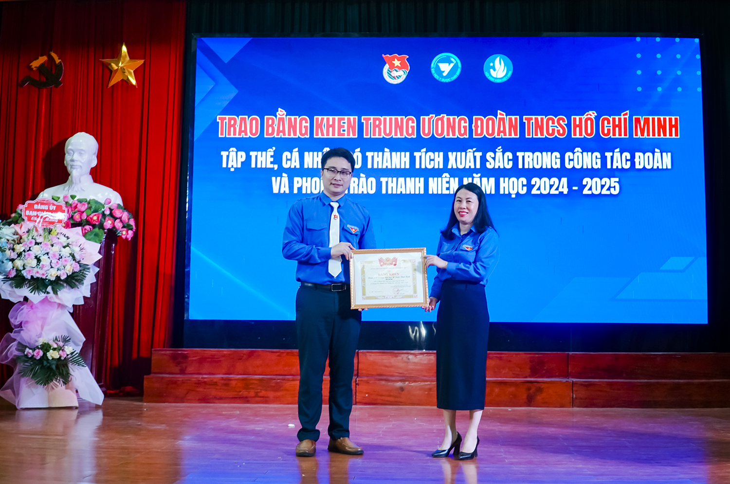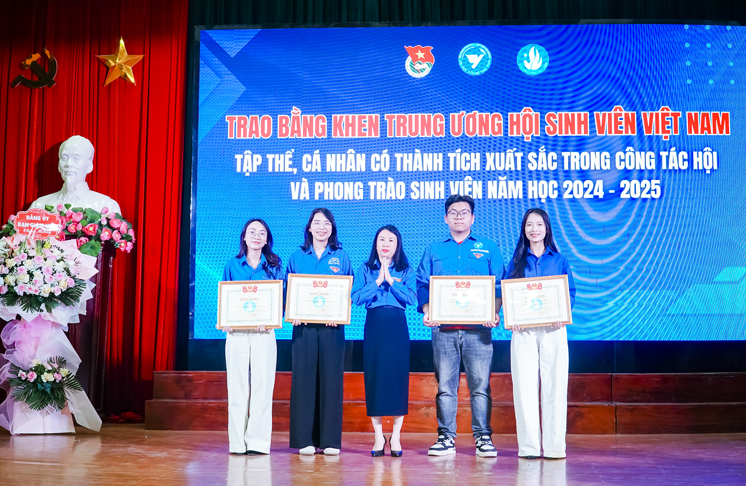 Đại diện lãnh đạo Nhà trường, lãnh đạo Tỉnh đoàn, BCH Đoàn, Hội trao tặng các danh hiệu cho các tập thể và cá nhân