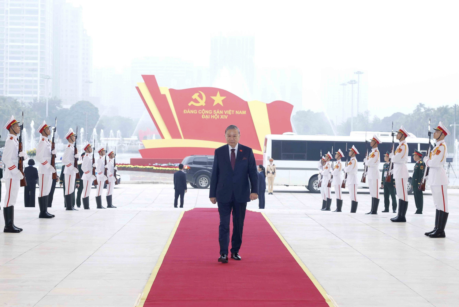 Sáng 19/1/2026, sau khi vào Lăng viếng Chủ tịch Hồ Chí Minh và dâng hương tại Đài tưởng niệm các Anh hùng liệt sĩ, Tổng Bí thư Tô Lâm cùng các đồng chí lãnh đạo Đảng, Nhà nước và đại biểu dự Đại hội đại biểu toàn quốc lần thứ XIV của Đảng Cộng sản Việt Nam di chuyển đến Trung tâm Hội nghị Quốc gia (Hà Nội) để tiến hành phiên họp trù bị.