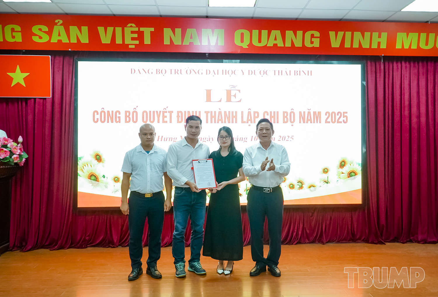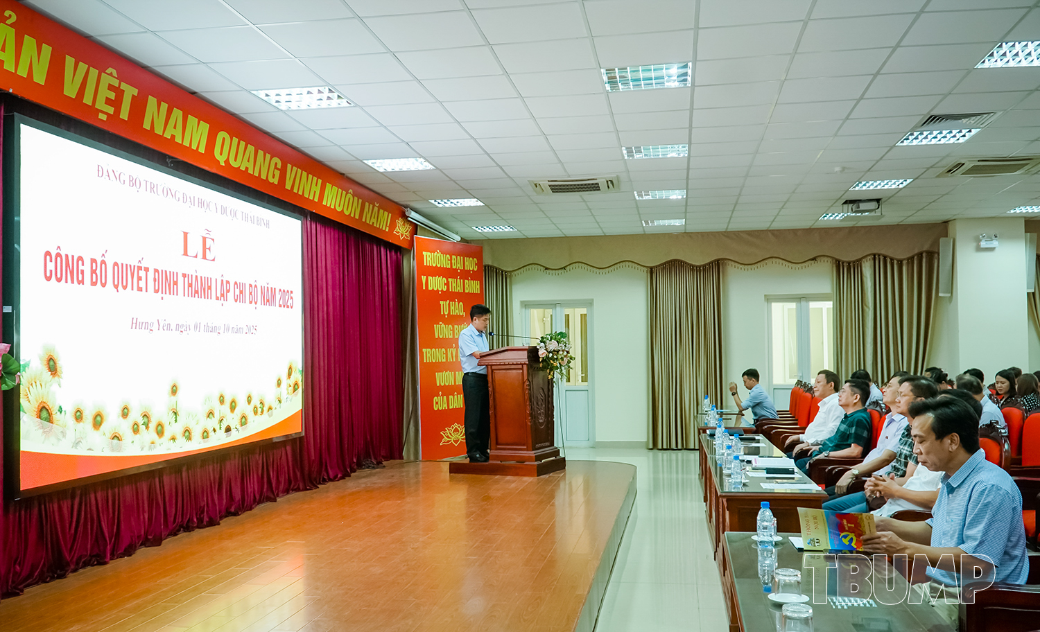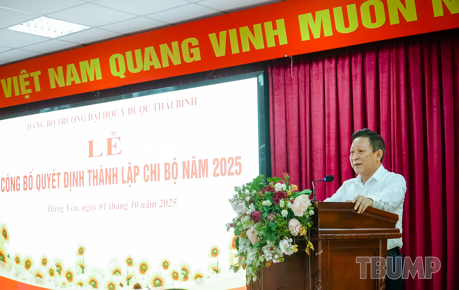 Ngày 01/10/2025, Đảng bộ Trường Đại học Y Dược Thái Bình đã tổ chức Lễ công bố Quyết định thành lập và ra mắt 02 chi bộ mới trực thuộc Đảng bộ Nhà trường (Chi bộ Sinh hoạt tạm thời và chi bộ Y K55).