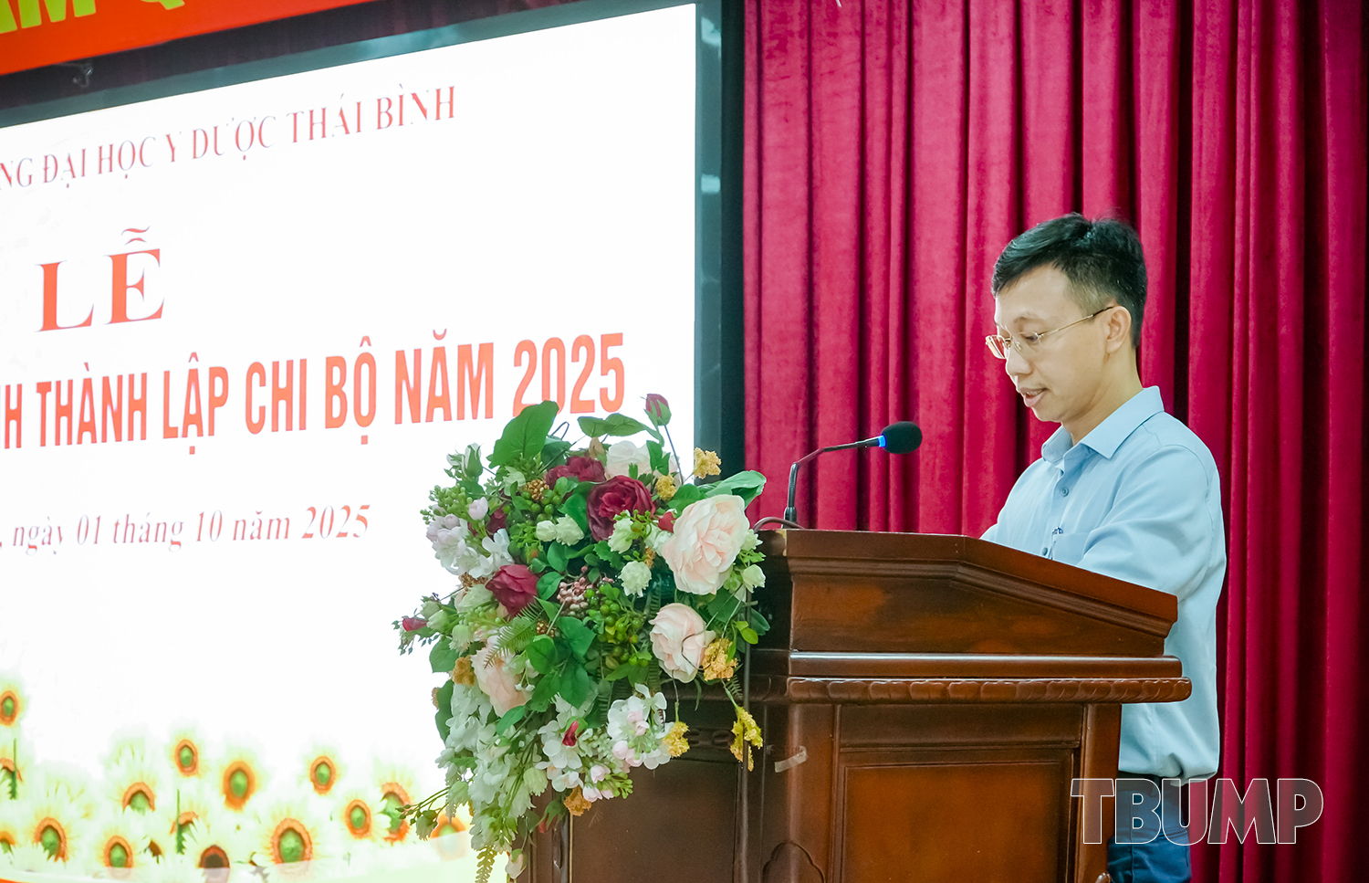 Tại buổi lễ, đồng chí Lê Xuân Hưng - Ủy viên Ban Tổ chức Đảng ủy đã công bố Quyết định của Đảng ủy về việc thành lập chi bộ Sinh hoạt tạm thời và chi bộ Y K55 trực thuộc Đảng bộ Trường Đại học Y Dược Thái Bình.