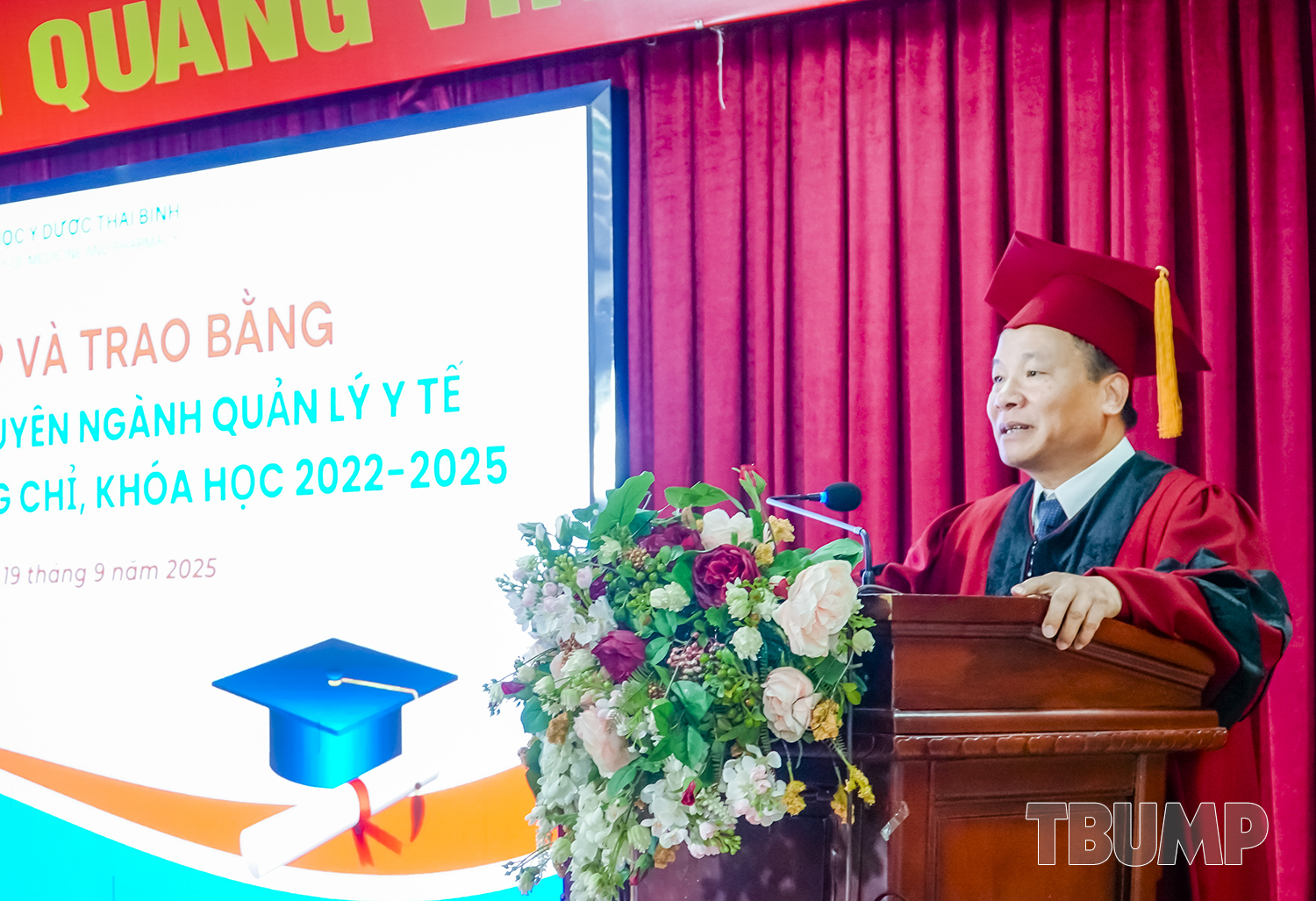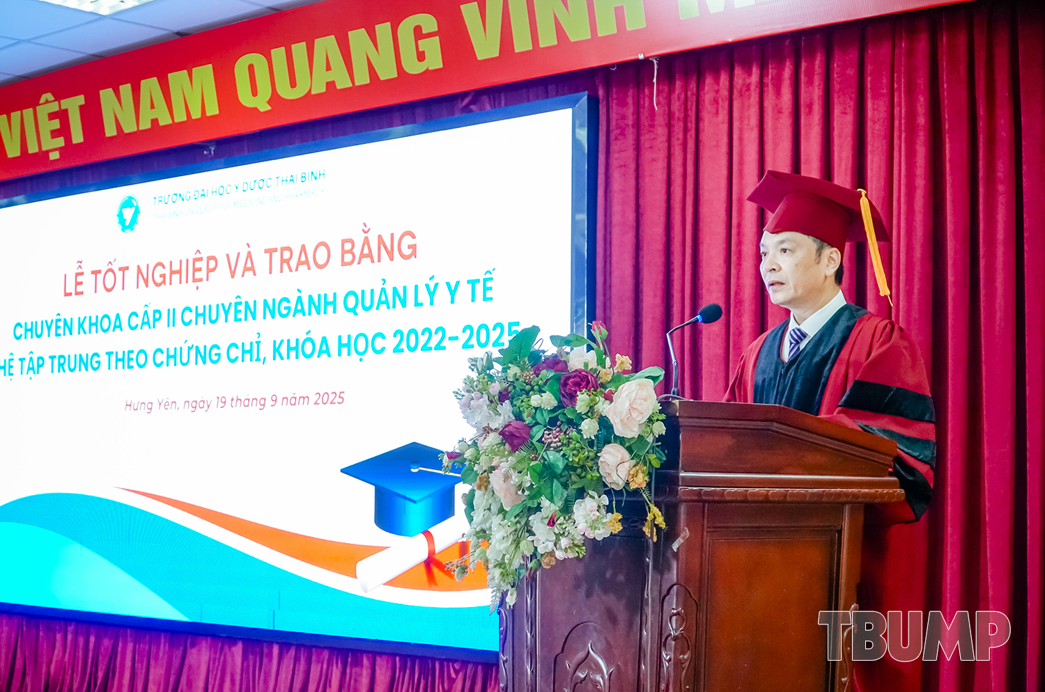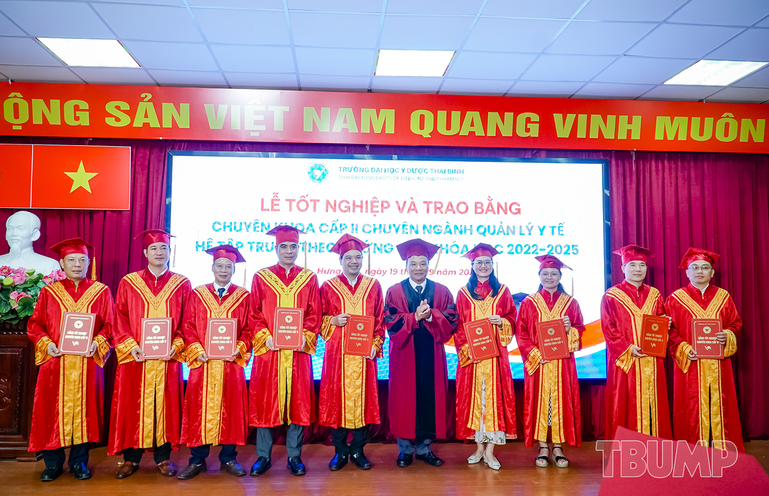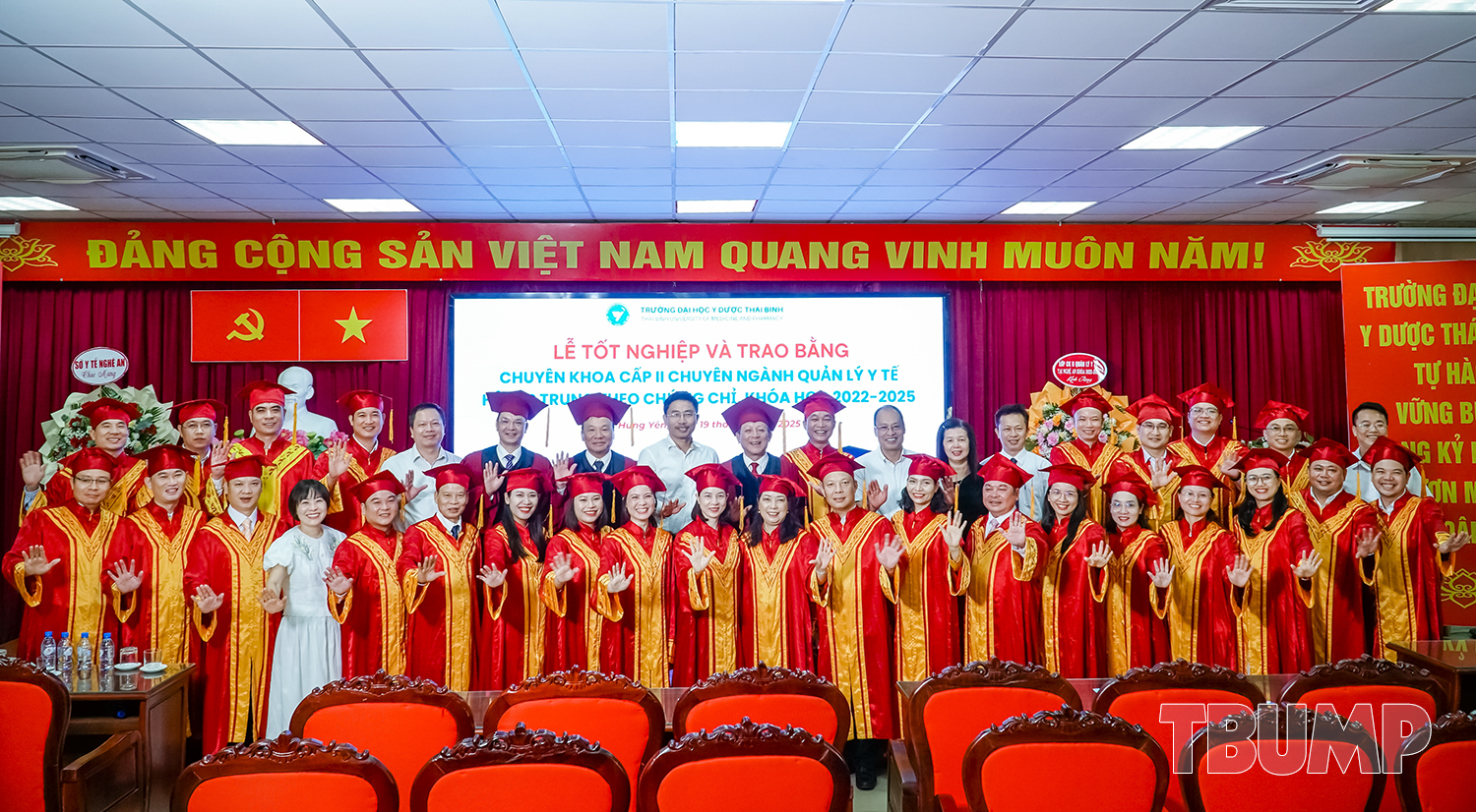 Ngày 19/9/2025, Trường Đại học Y Dược Thái Bình long trọng tổ chức Lễ tốt nghiệp và trao bằng tốt nghiệp cho 30 học viên lớp Chuyên khoa cấp II chuyên ngành Quản lý y tế (QLYT) hệ tập trung theo chứng chỉ của ngành y tế Nghệ An.