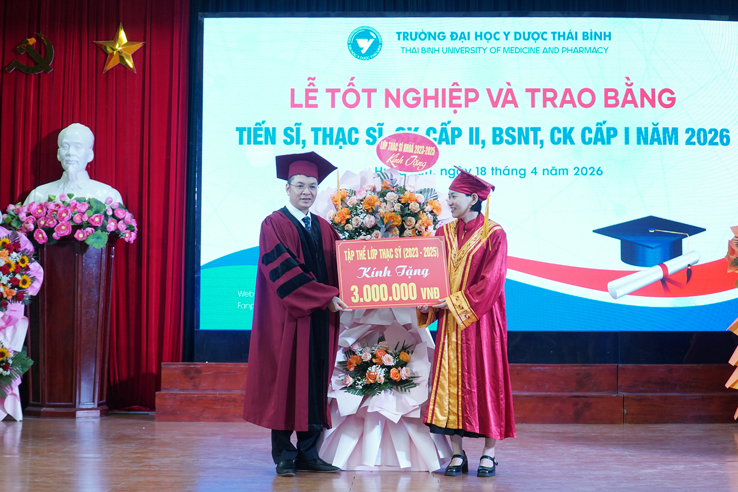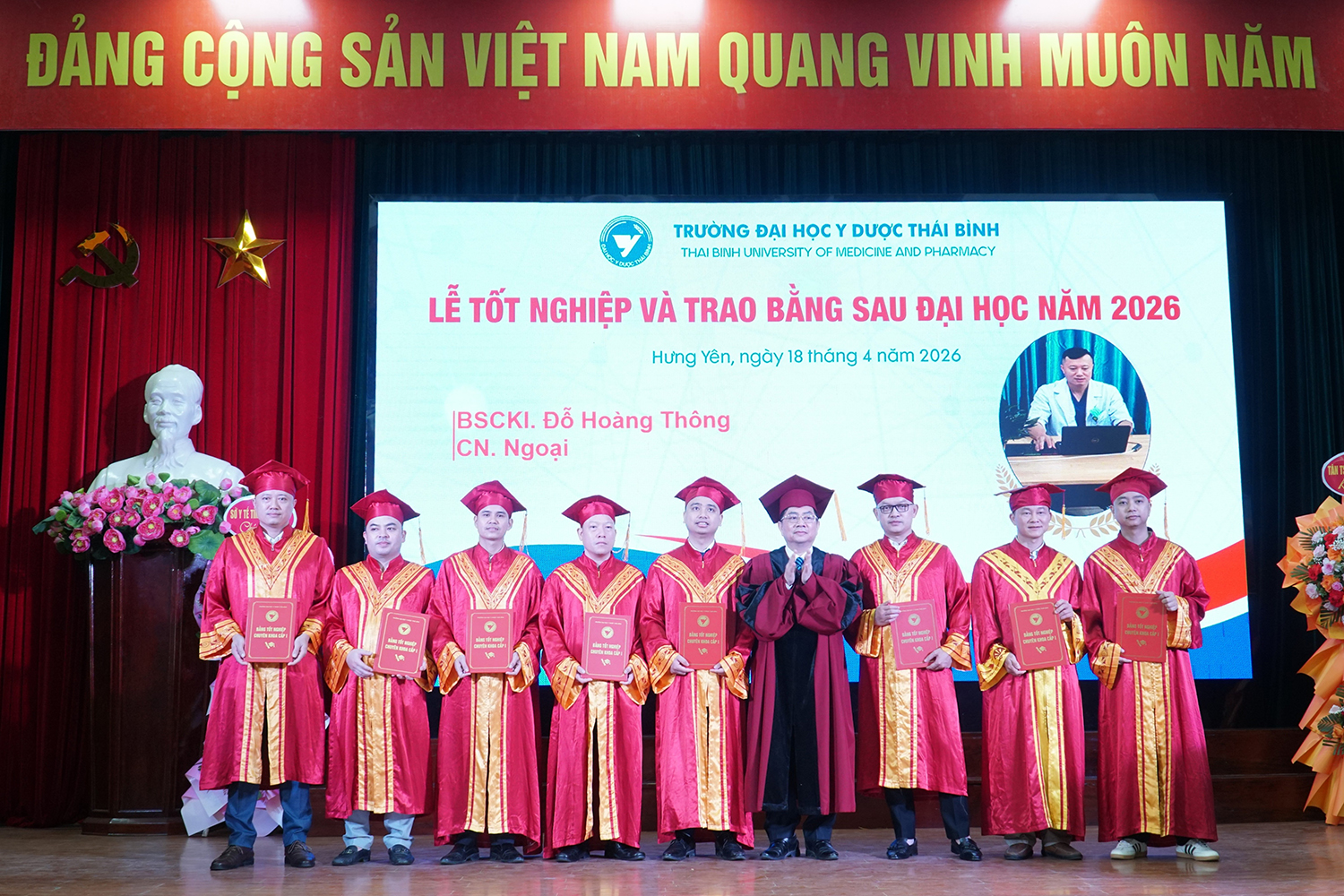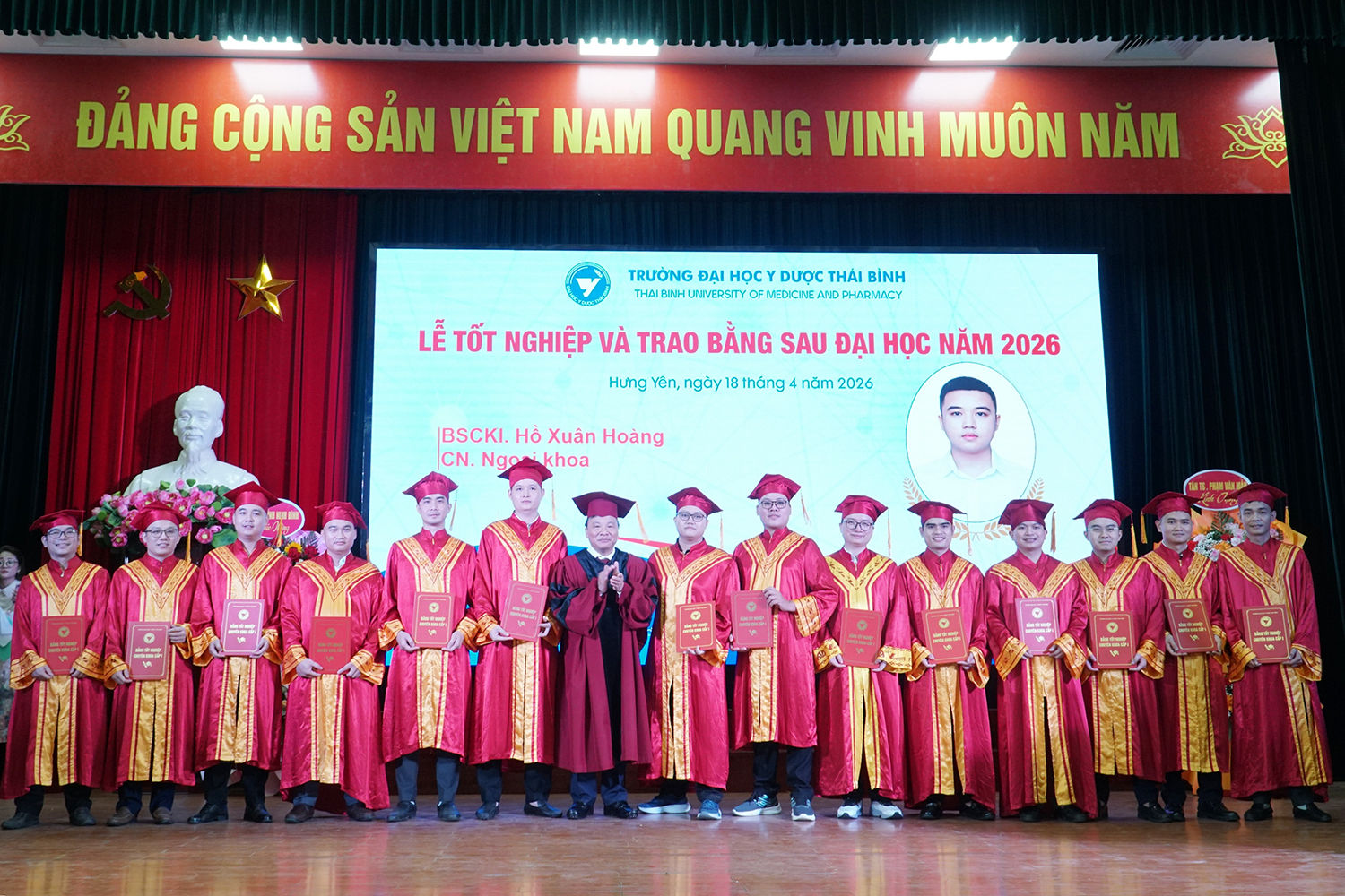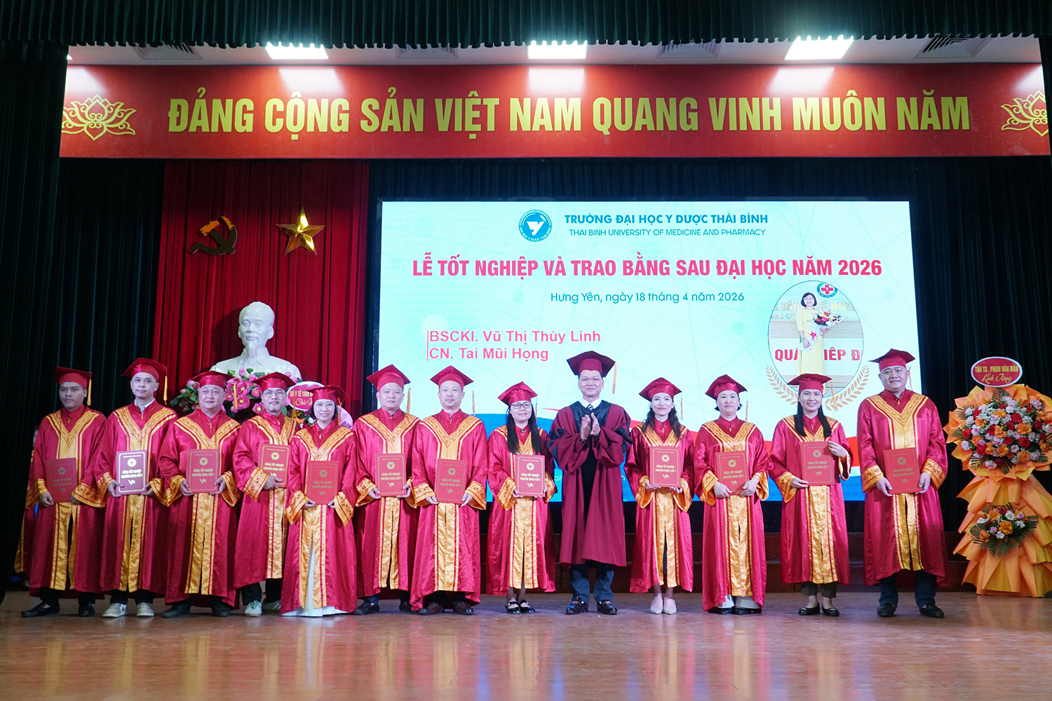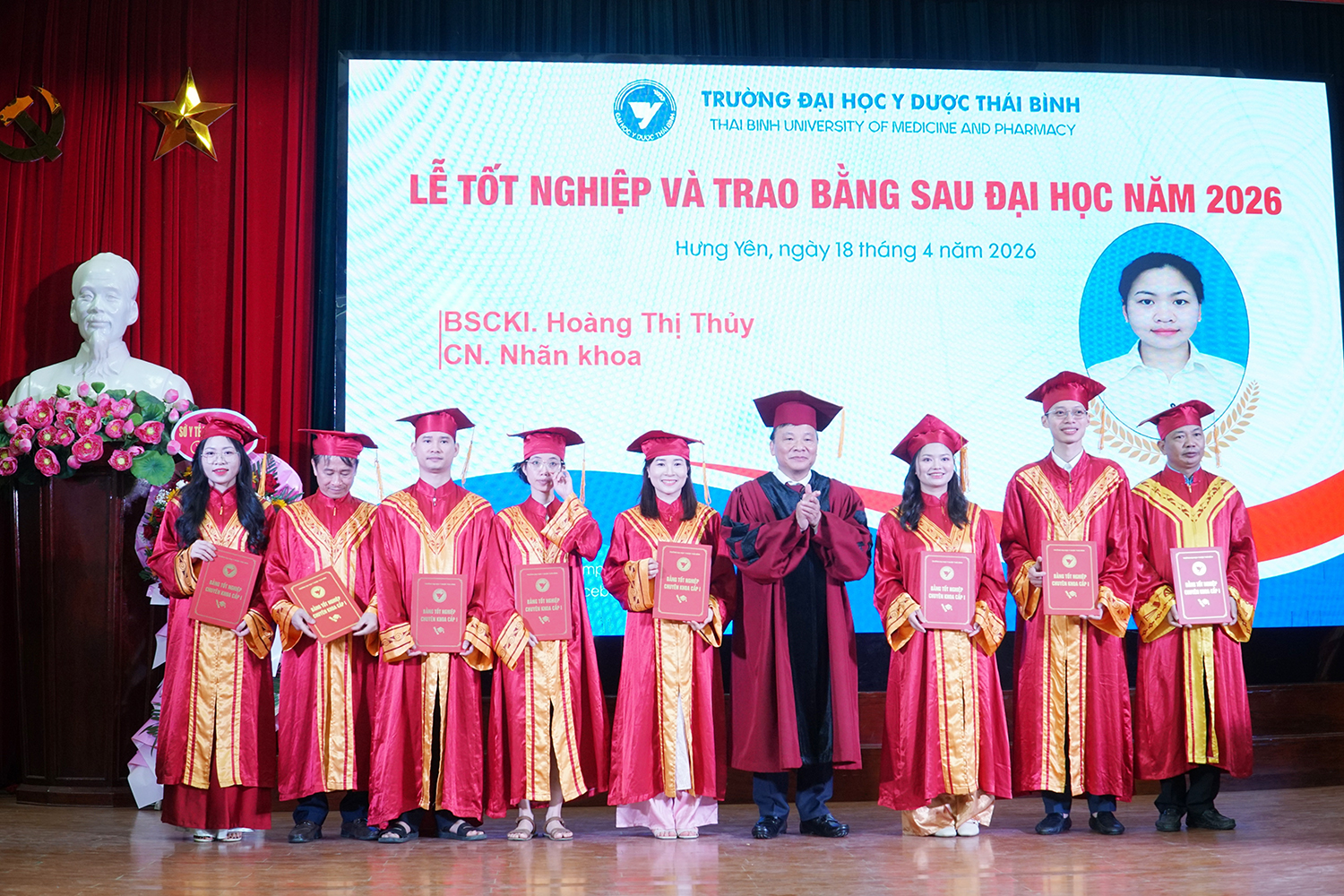 Lễ tốt nghiệp và trao bằng sau đại học năm 2026 không chỉ ghi nhận thành quả học tập của các nghiên cứu sinh, học viên, mà còn tiếp tục khẳng định vai trò đầu tàu của Trường Đại học Y Dược Thái Bình trong đào tạo sau đại học ngành y tế. Với bề dày truyền thống, quy mô đào tạo lớn và không ngừng nâng cao chất lượng, Trường Đại học Y Dược Thái Bình đã, đang và sẽ tiếp tục là địa chỉ tin cậy trong đào tạo nguồn nhân lực chất lượng cao, đáp ứng yêu cầu phát triển của ngành y tế Việt Nam trong giai đoạn mới./.