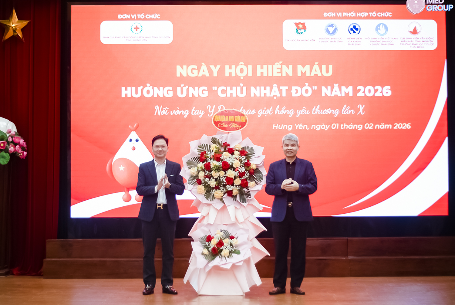 Ngày hội hiến máu “Chủ nhật đỏ” lần thứ X năm 2026 với chủ đề “Nối vòng tay Y Dược - Trao giọt hồng yêu thương” đã khép lại với nhiều cảm xúc và dấu ấn tốt đẹp, tiếp tục khẳng định vai trò tích cực của Trường Đại học Y Dược Thái Bình trong phong trào hiến máu tình nguyện, góp phần xây dựng một cộng đồng nhân văn, sẻ chia và giàu trách nhiệm.