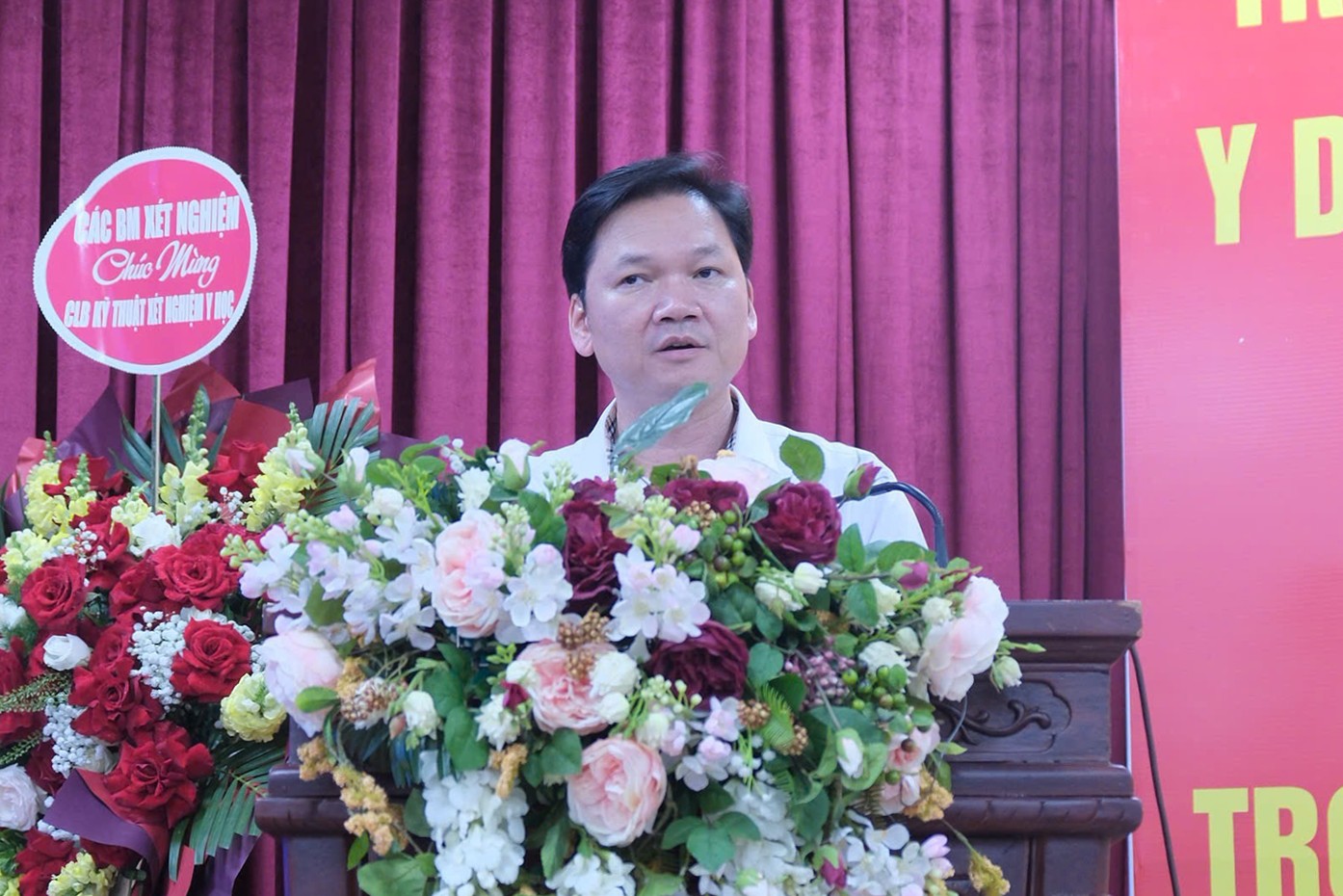 Phát biểu tại buổi lễ, TS Nguyễn Thế Điệp - Phó Hiệu trưởng Nhà trường ghi nhận, đánh giá cao tinh thần chủ động, sáng tạo của sinh viên trong việc thành lập Câu lạc bộ Kỹ thuật xét nghiệm y học, tạo môi trường học thuật thiết thực, góp phần rèn luyện kỹ năng chuyên môn, tăng cường khả năng nghiên cứu khoa học và thúc đẩy tinh thần học tập, sáng tạo của sinh viên. TS Nguyễn Thế Điệp mong muốn Câu lạc bộ sẽ trở thành mái nhà chung gắn kết sinh viên, góp phần xây dựng thế hệ cán bộ xét nghiệm tương lai bản lĩnh, chuyên môn vững vàng, đáp ứng yêu cầu chăm sóc và bảo vệ sức khỏe Nhân dân.