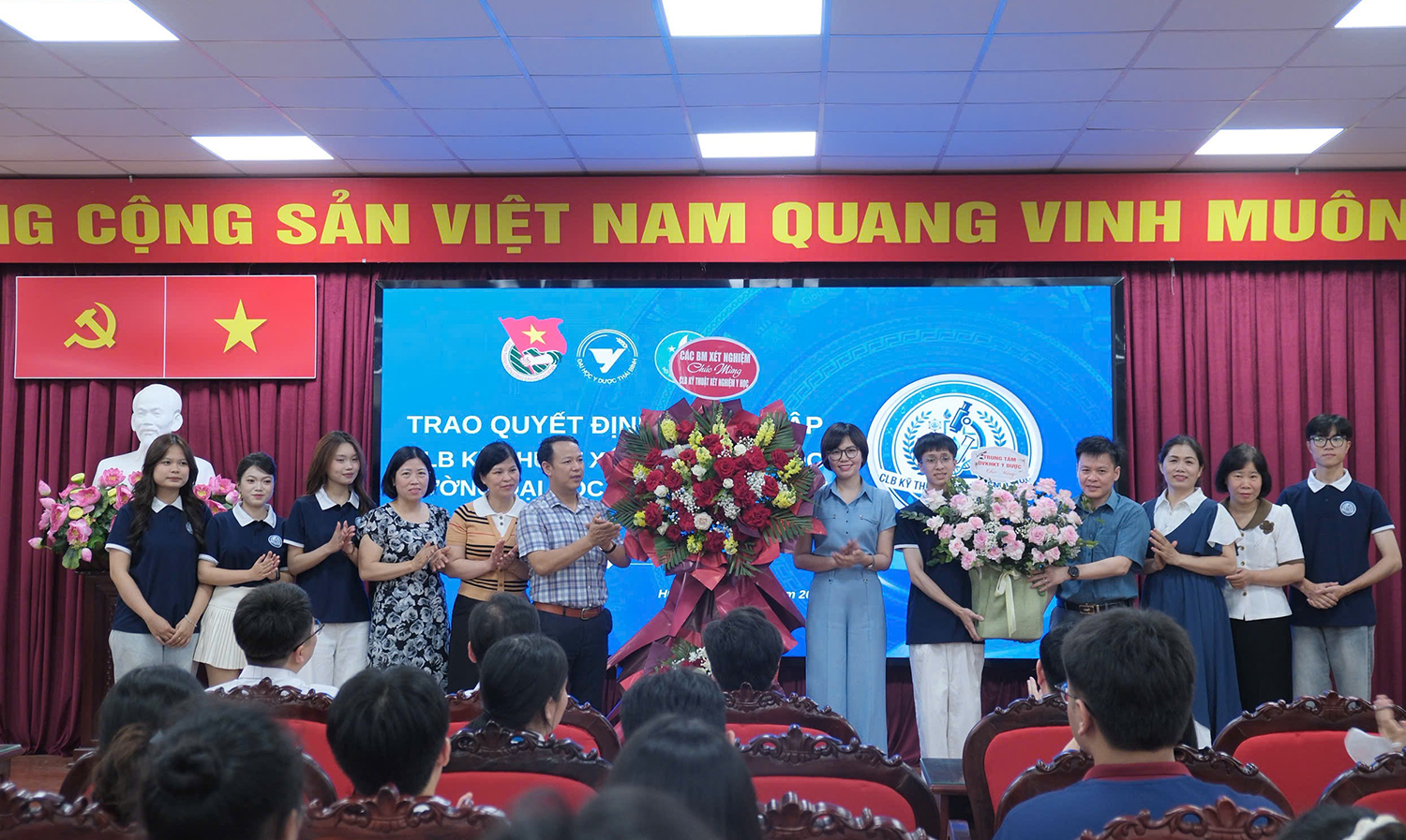 Cùng dự còn có đại diện khối Kỹ thuật xét nghiệm y học; khoa Khoa học Y sinh; Bộ môn Hóa sinh; các bộ môn chuyên ngành Xét nghiệm; Đoàn Thanh niên, Hội Sinh viên Trường; Ban Chủ nhiệm các câu lạc bộ sinh viên, cùng đông đảo sinh viên Nhà trường.