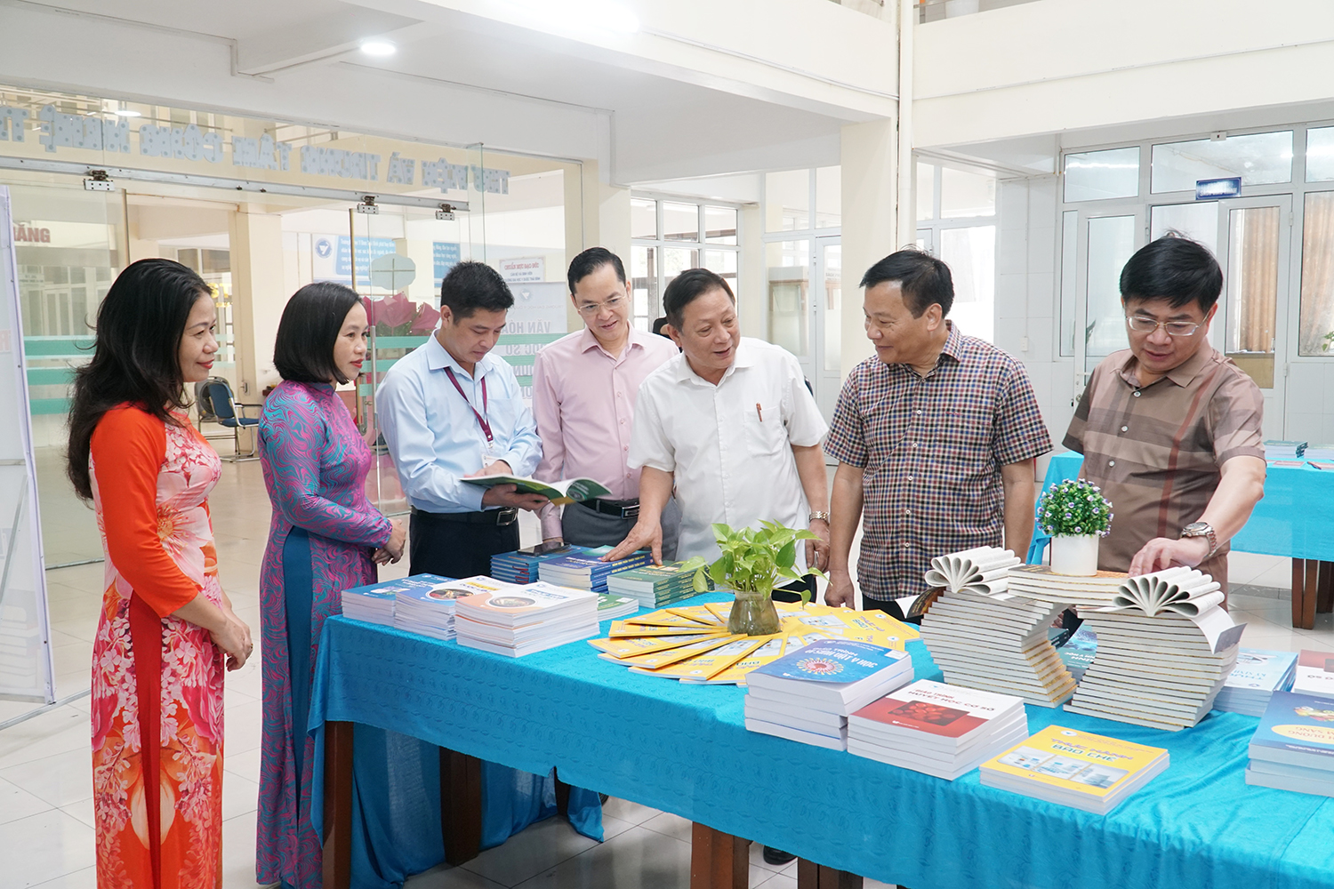 Đến dự và chúc mừng Trung tâm Thư viện và Công nghệ thông tin nhân ngày Sách và Văn hoá đọc Việt Nam, có PGS.TS Nguyễn Quốc Tiến - Bí thư Đảng ủy; PGS.TS Nguyễn Duy Cường - Hiệu trưởng; PGS.TS Nguyễn Xuân Bái - Phó Hiệu trưởng, Giám đốc Bệnh viện Trường; PGS.TS Nguyễn Thanh Bình - Phó Hiệu trưởng.