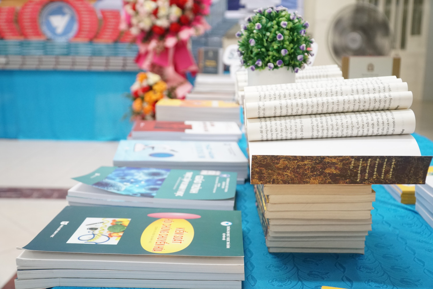 Hơn 100 đầu sách được trưng bày và giới thiệu tại Trung tâm Thư viện và Công nghệ thông tin.