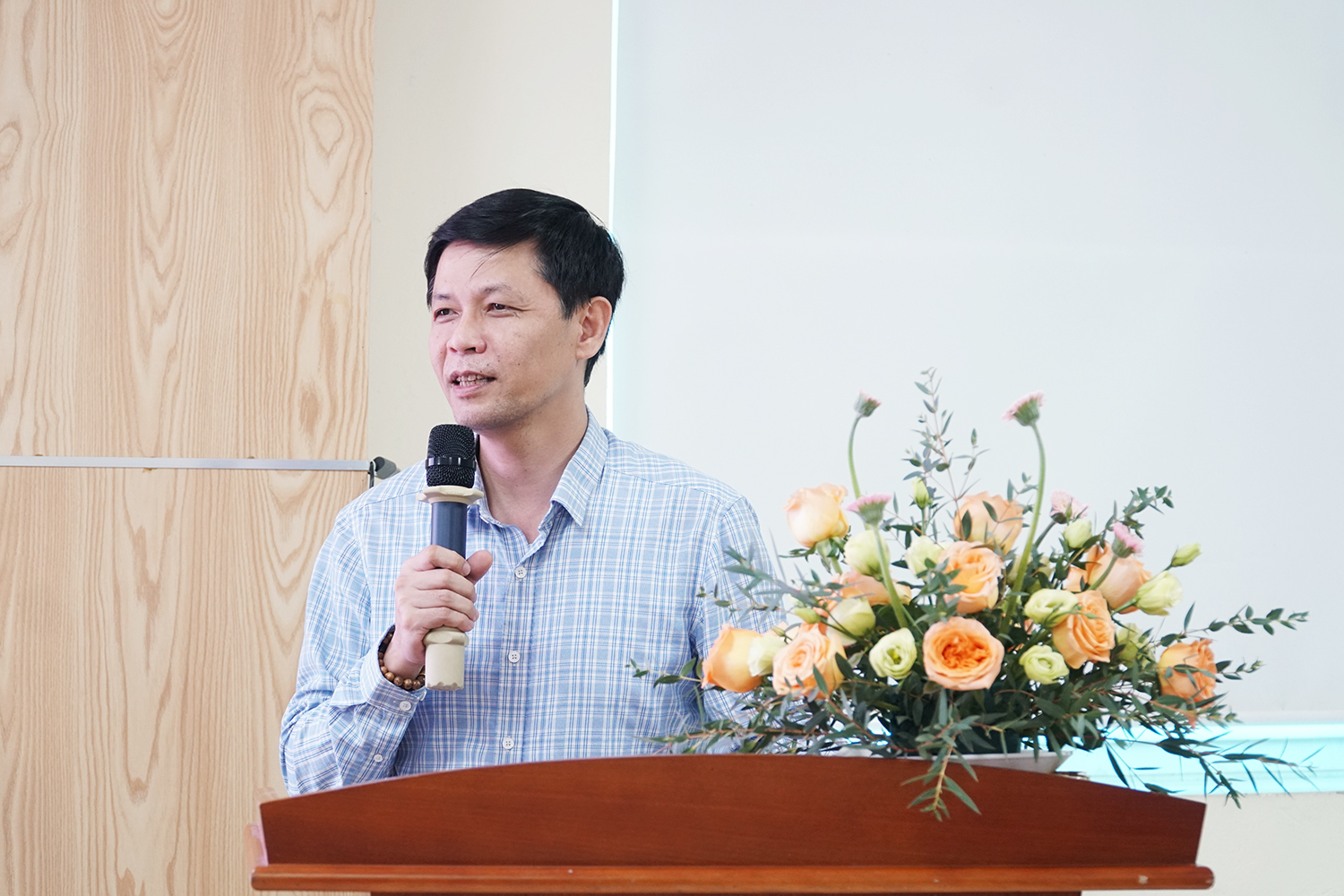 Bác sĩ CKII Bùi Trung Vang - Giám đốc Bệnh viện Đa khoa Hưng Hà phát biểu tại toạ đàm.