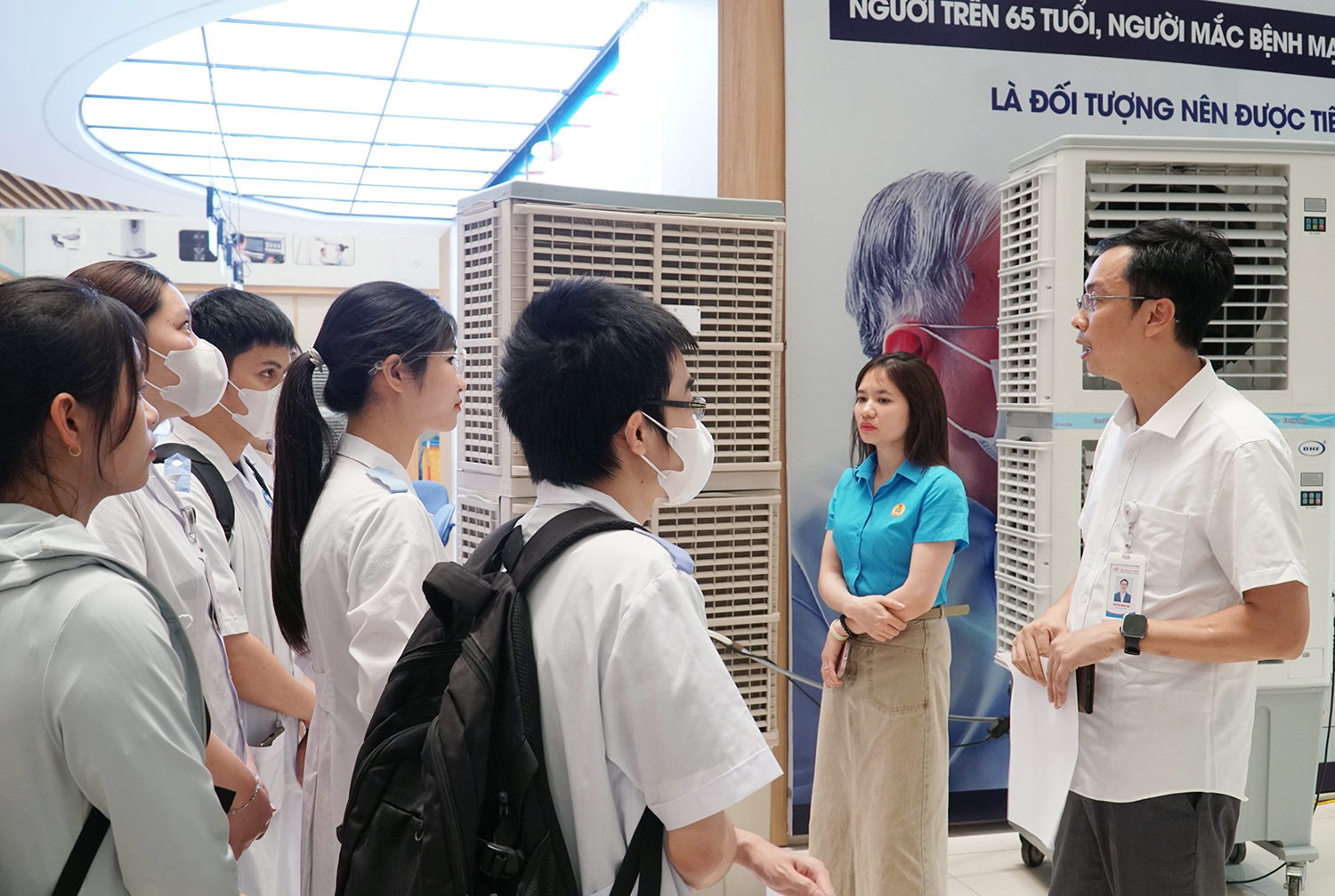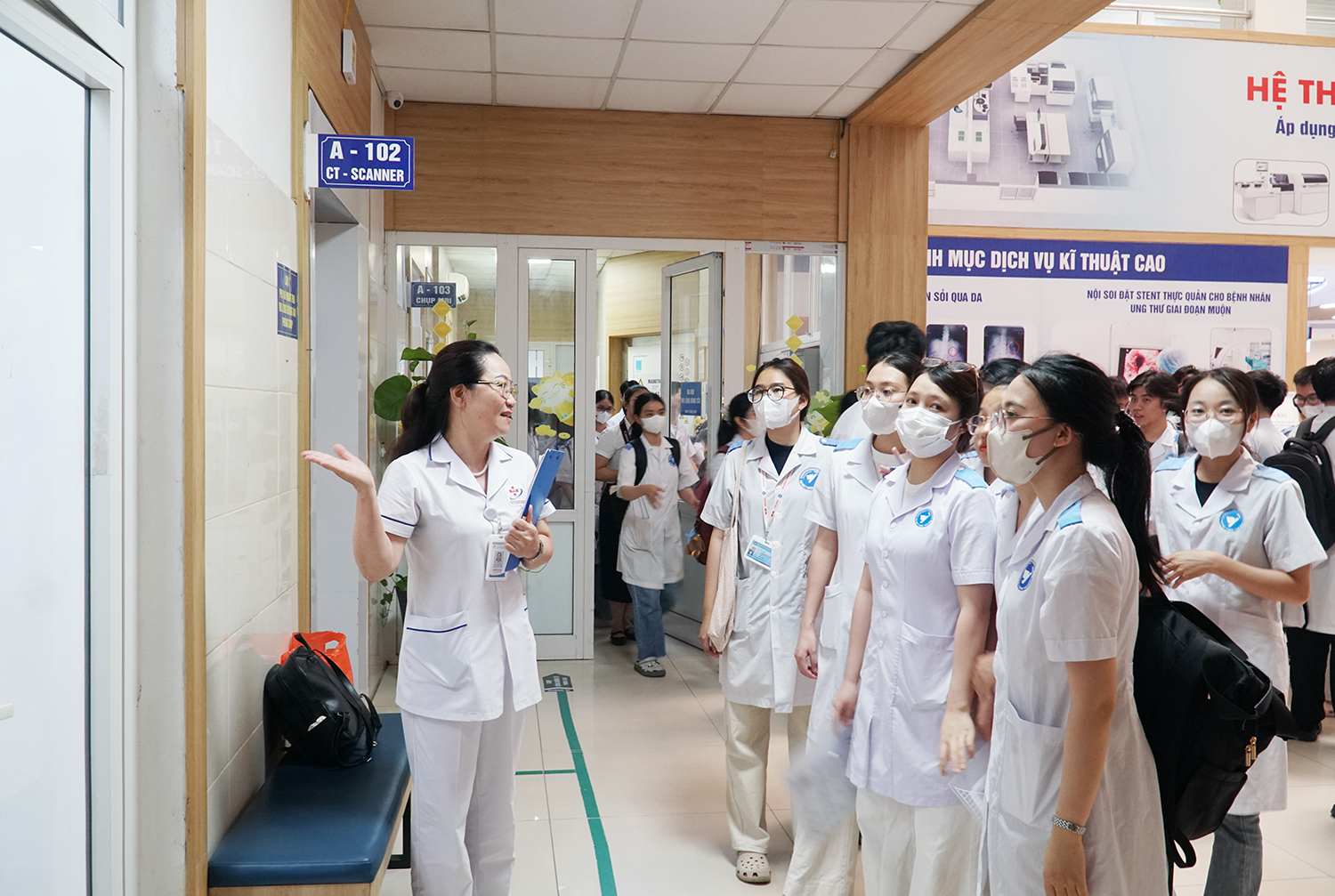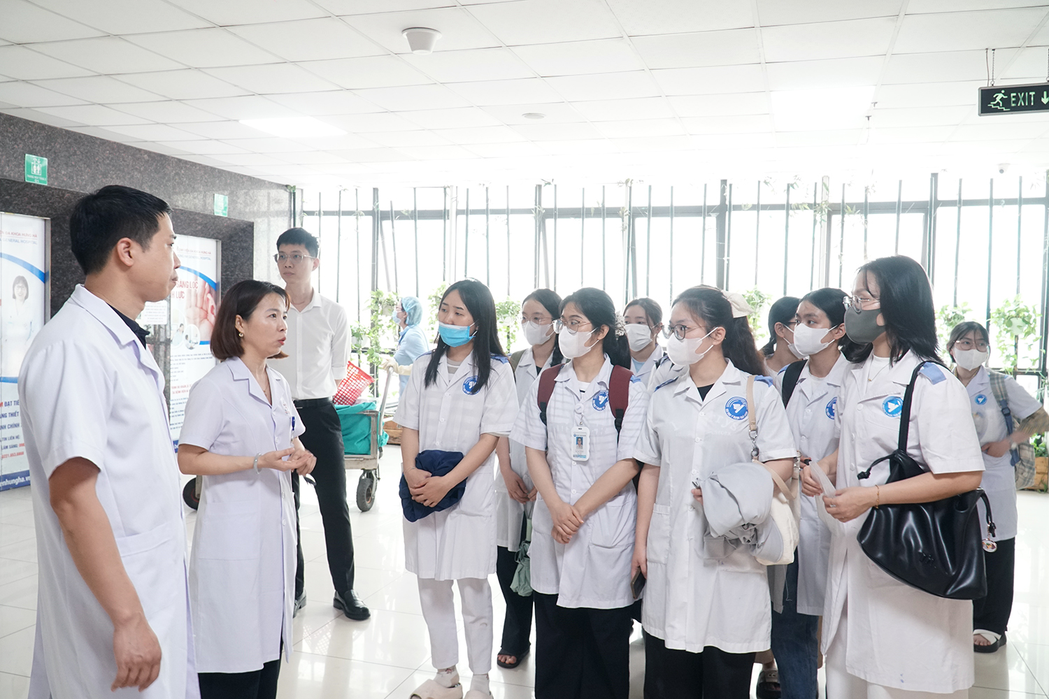 Sinh viên tìm hiểu môi trường làm việc thực tế tại Bệnh viện Đa khoa Hưng Hà.