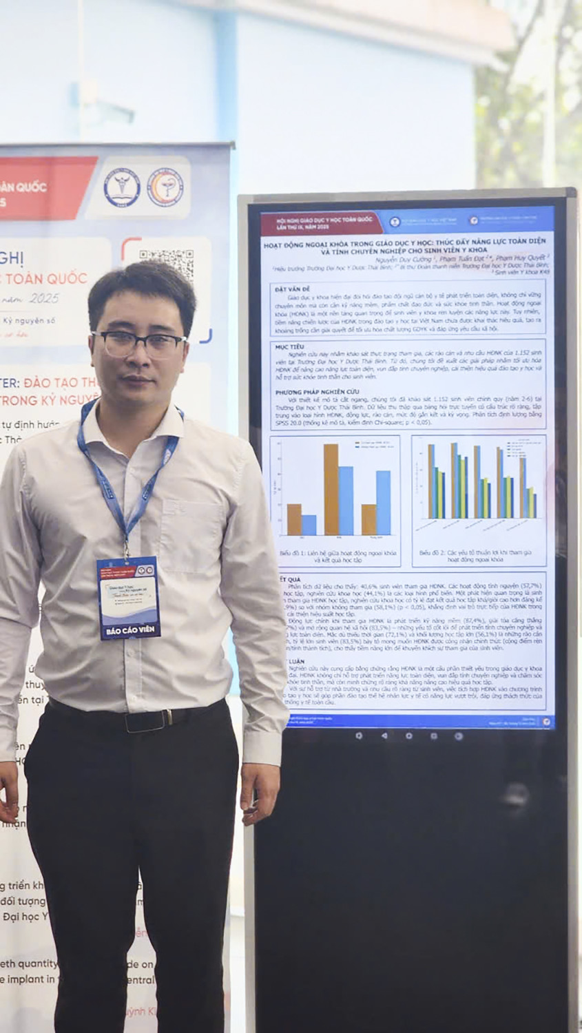 Việc tham gia Hội nghị Giáo dục Y học toàn quốc lần thứ IX năm 2025 là một phần trong chiến lược phát triển giáo dục và đào tạo của Trường Đại học Y Dược Thái Bình. Hội nghị không chỉ là cơ hội để các cán bộ của Trường trao đổi, học hỏi kinh nghiệm, mà còn là dịp để Nhà trường tiếp cận với các nghiên cứu khoa học mới, các sáng kiến trong công tác đào tạo và phát triển đội ngũ giảng viên, đáp ứng các yêu cầu ngày càng cao trong ngành y tế. Đây là một trong những bước đi quan trọng trong quá trình xây dựng và phát triển nền giáo dục y học chất lượng cao tại Trường Đại học Y Dược Thái Bình. Một số hình ảnh tại Hội nghị: