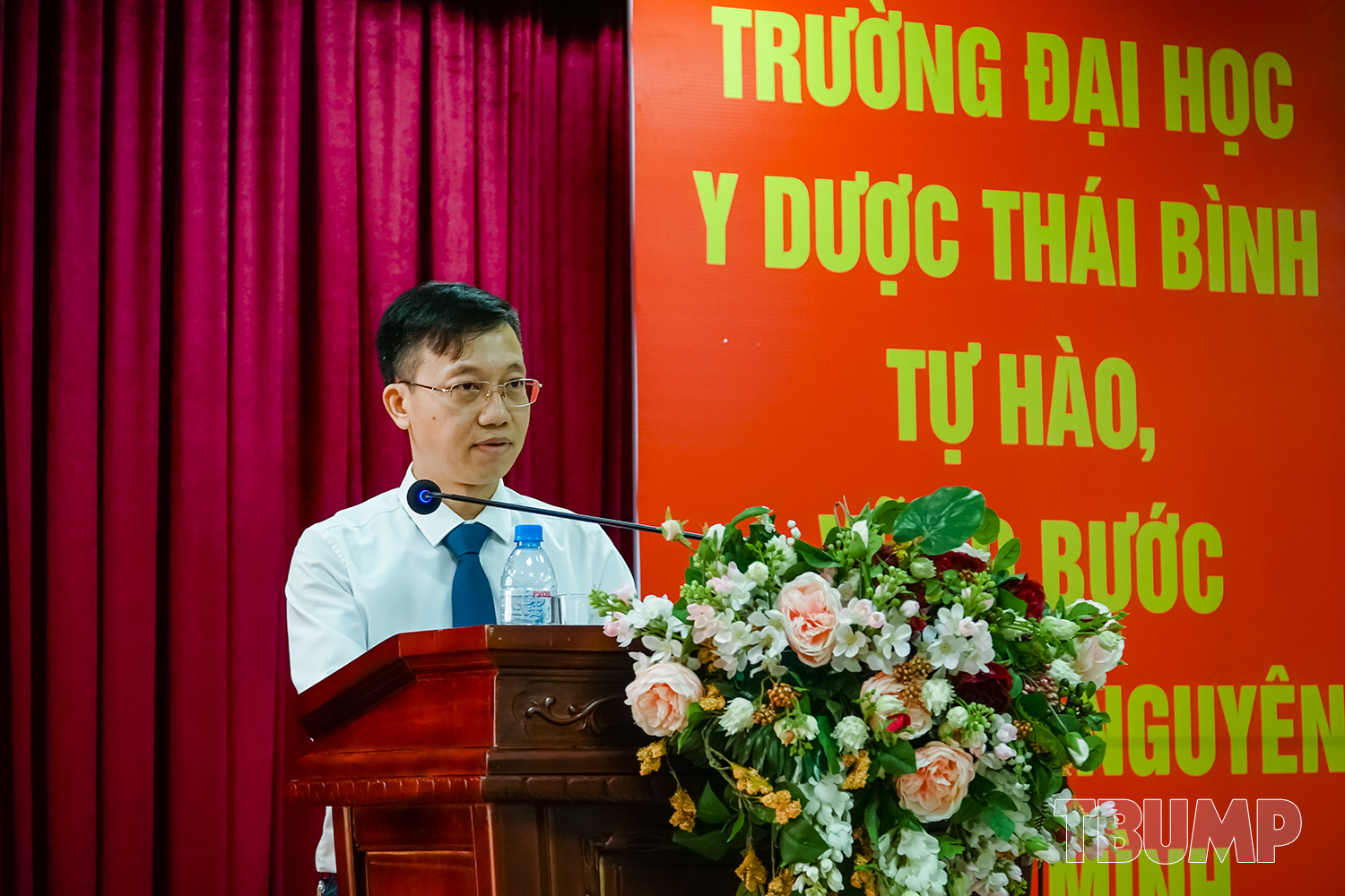 Thay mặt lãnh đạo Trường, TS Nguyễn Thế Điệp - Phó Hiệu trưởng kêu gọi toàn thể cán bộ, giảng viên, viên chức, người lao động, học viên, sinh viên trong toàn Trường: Mỗi người Thầy là tấm gương tinh thần tự học và cống hiến; mỗi cán bộ chuyên viên cần thi đua, đổi mới, cải tiến trong công việc; mỗi học viên, sinh viên không ngừng rèn luyện để trở thành công dân toàn cầu. Hãy cùng nhau đoàn kết, thi đua sáng tạo, biến mục tiêu chung thành hành động cụ thể hằng ngày, đưa Trường Đại học Y Dược Thái Bình tiến nhanh, tiến đúng đến mục tiêu./.