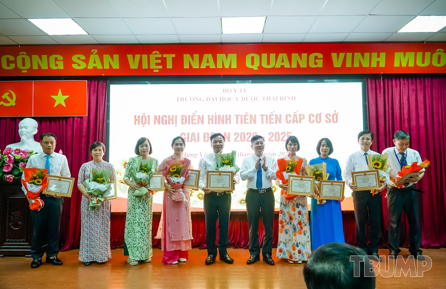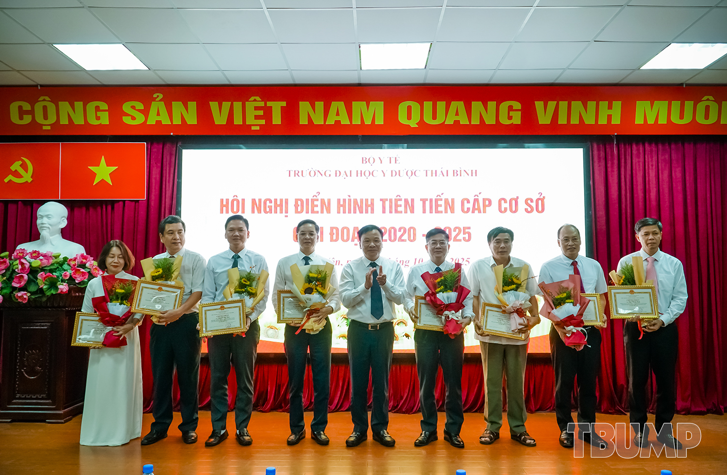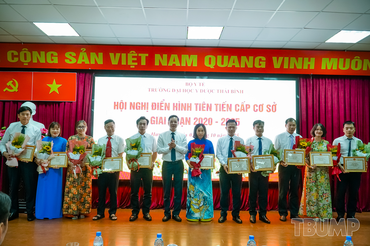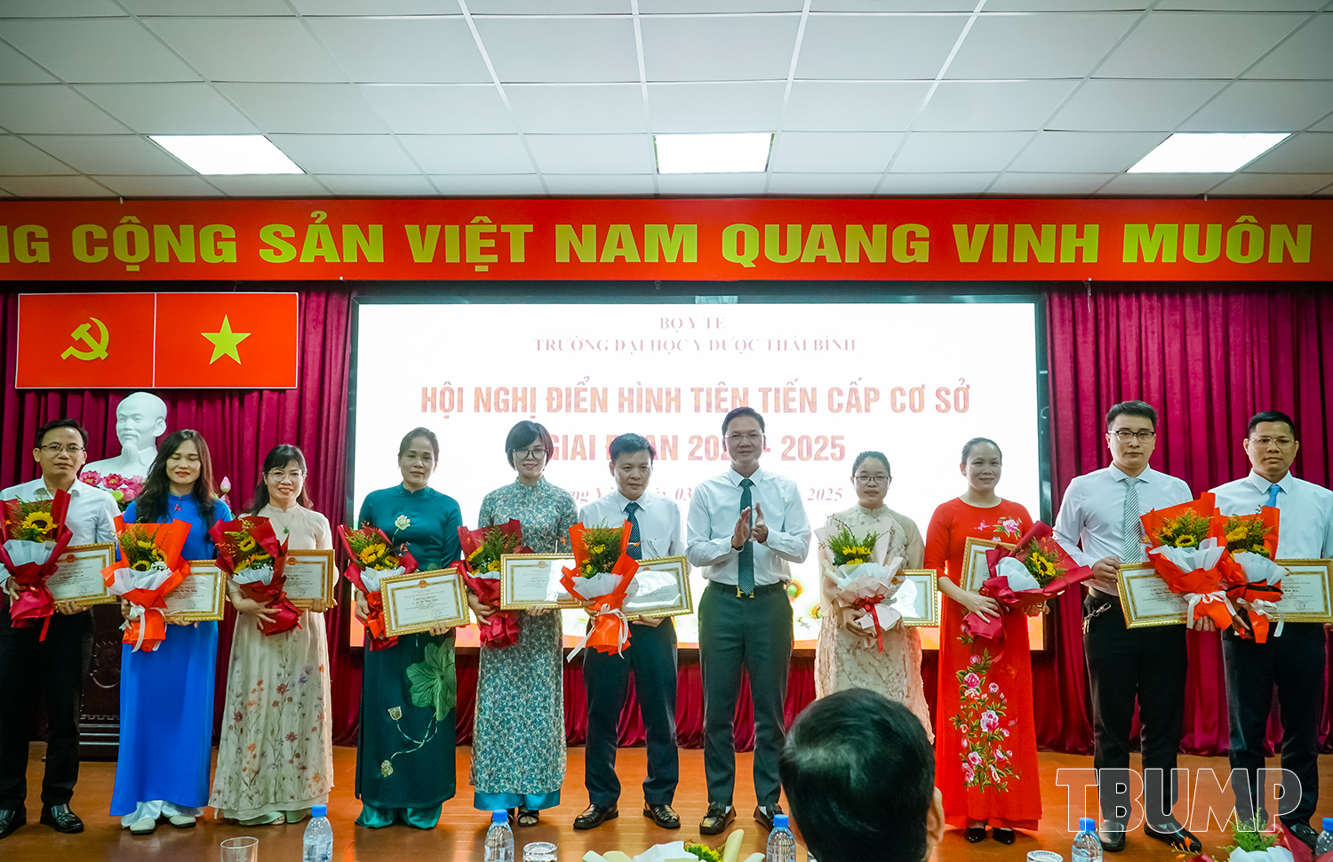 Tại Hội nghị, lãnh đạo Nhà trường đã vinh danh và trao Giấy chứng nhận Danh hiệu điển hình tiên tiến cấp cơ sở cho 04 tập thể và 43 cá nhân có thành tích tiêu biểu trong trào thi đua yêu nước giai đoạn 2020-2025 của Trường Đại học Y Dược Thái Bình.